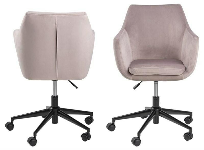 Fotel biurowy na kółkach Nora to stylowy fotel tapicerowany tkaniną. Niezwykle popularny trend pokazuje, że tkaniny prezentują się niesamowicie zarówno na meblach wypoczynkowych jak i biurowych. Siedzisko wyłożone wysokoelastyczną gąbką, posiada zdejmowaną poduszkę. Metalowa podstawa na kółkach pomalowana została na kolor czarny. Kółka wykonane zostały z tworzywa. Fotel jest obrotowy, dodatkowo posiada możliwość regulacji wysokości siedziska. Fotel waży 12 kg, wymaga montażu. Maksymalne obciążenie wynosi 120kg.
