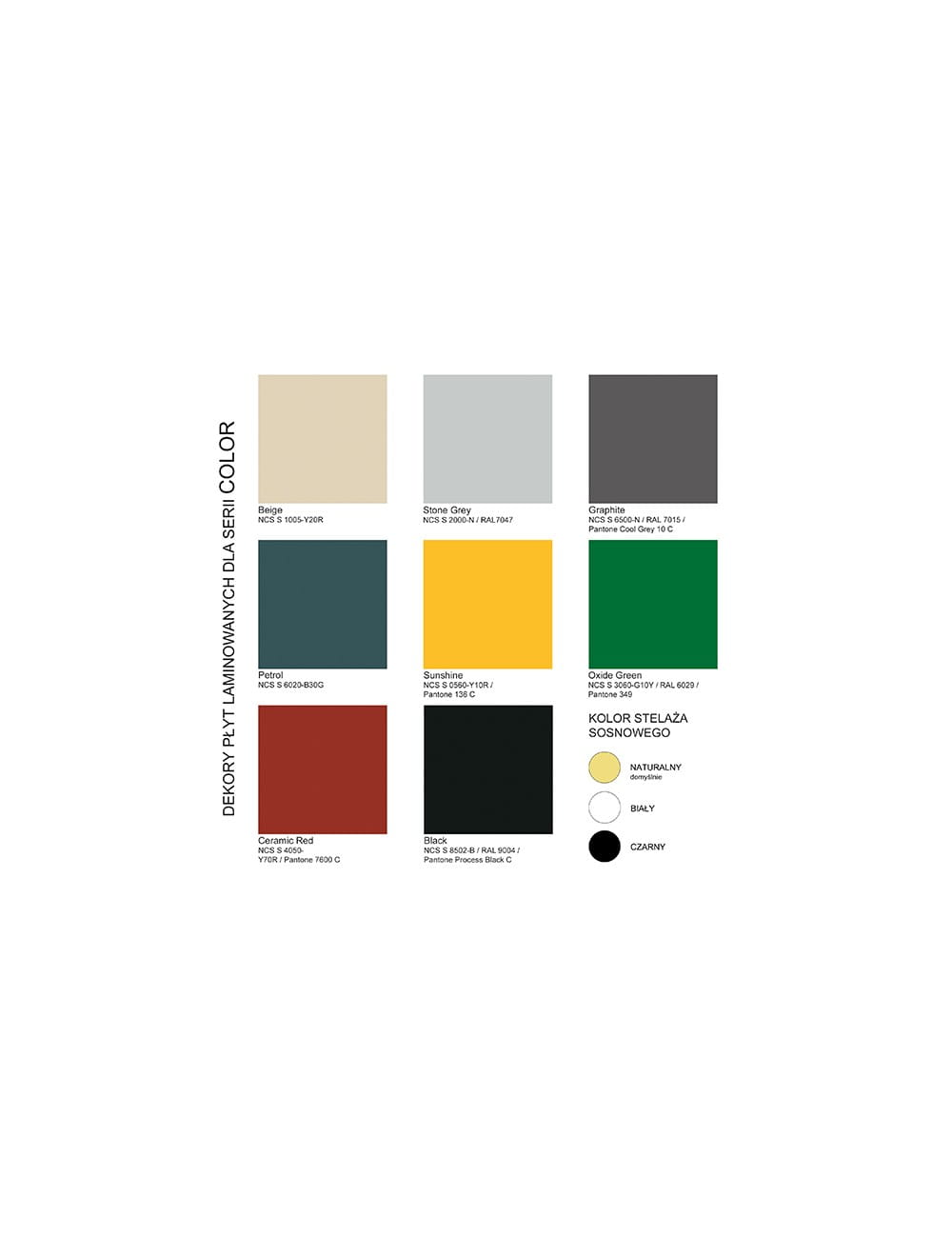 STELAŻ: lite drewno sosnowe lakierowane bezbarwnie lub na jeden z dwóch kolorów (ekologiczny lakier spełniający normy EN71-3)