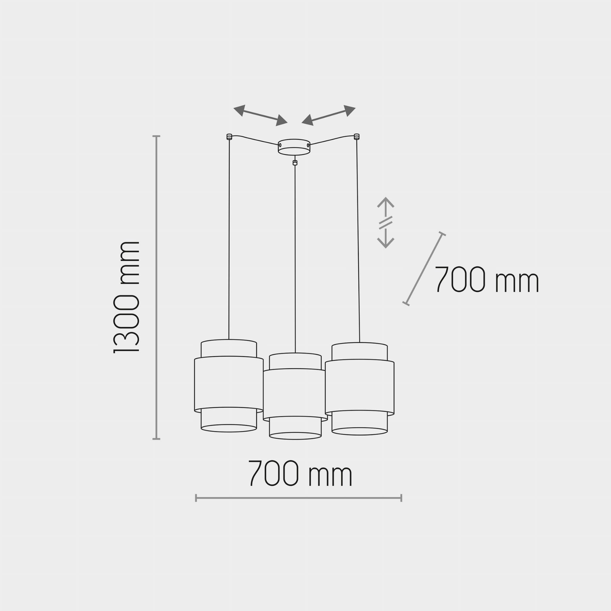 dwa rodzaje lampy wiszącej – z jednym abażurem oraz z trzema abażurami zawieszonymi na jednej listwie lub przewodach. Abażury mają średnicę 20 cm i są w formie tuby.