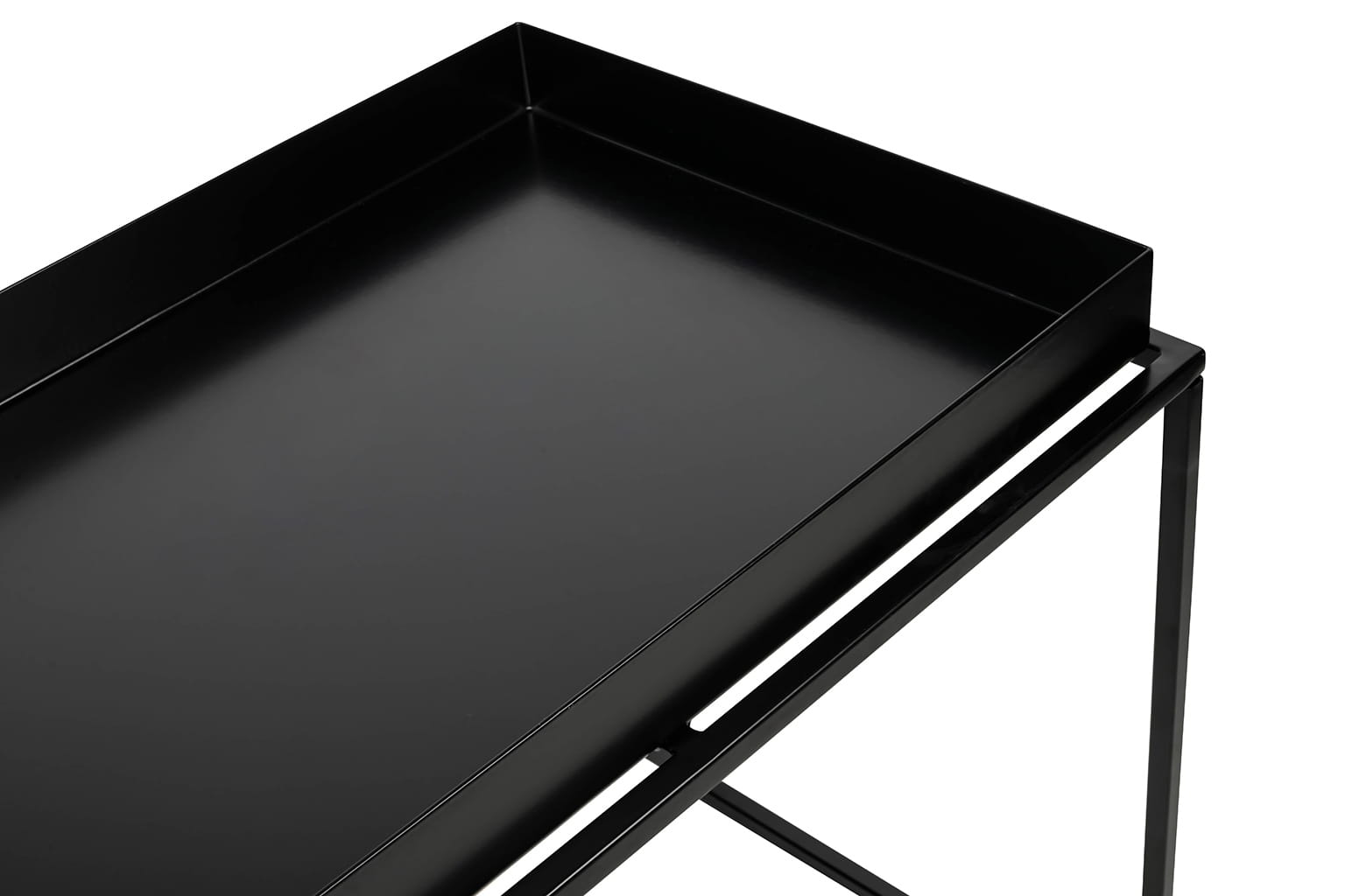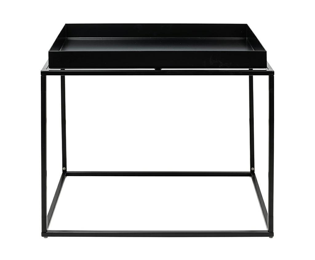 Nowoczesny stolik kawowy Rita o kwadratowym kształcie - wyglądem przypomina tacę, a jego podniesione brzegi zabezpieczają przedmioty przed zsunięciem się na podłogę.