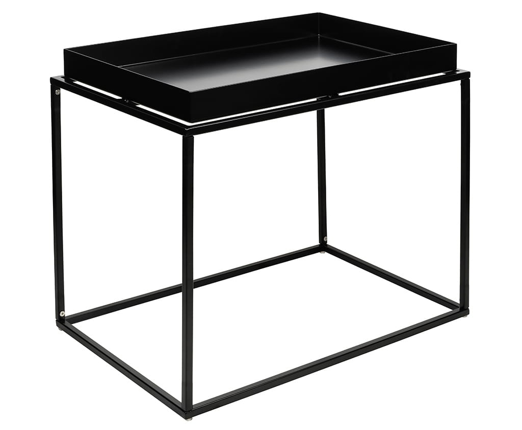Cały stolik wykonano z metalu w kolorze czarnym satynowym.
