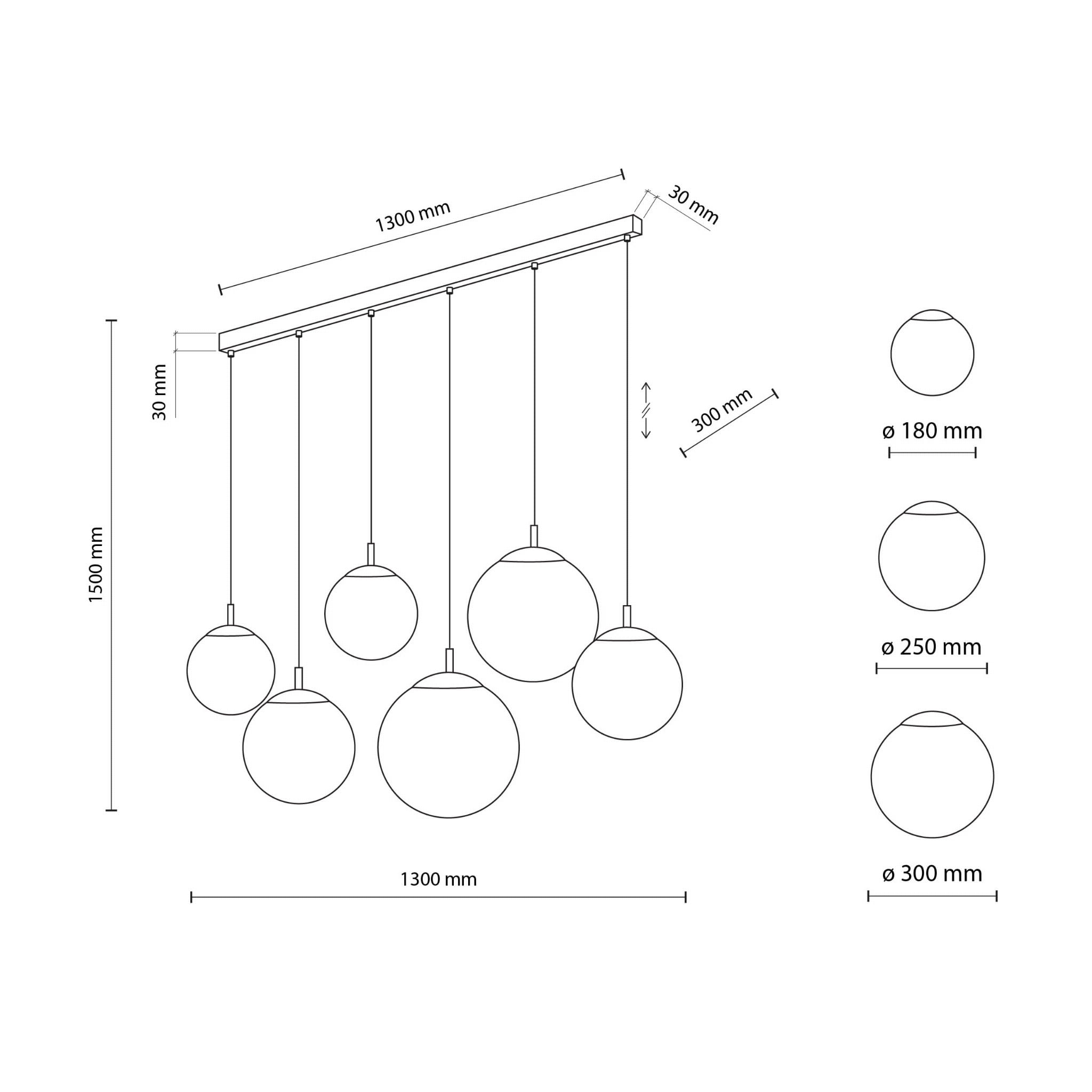 Wymiary lampy (mm) - długość / szerokość / wysokość 1300/300/1500