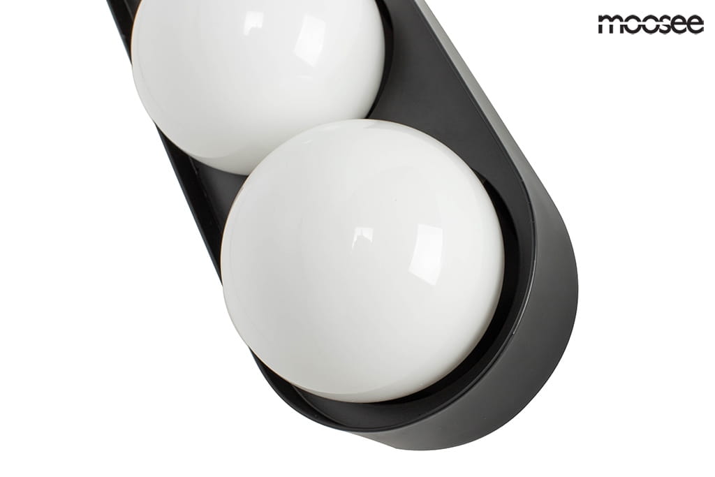 Uniwersalne połączenie kolorystyczne białych, szklanych kloszy ze stalą węglową.