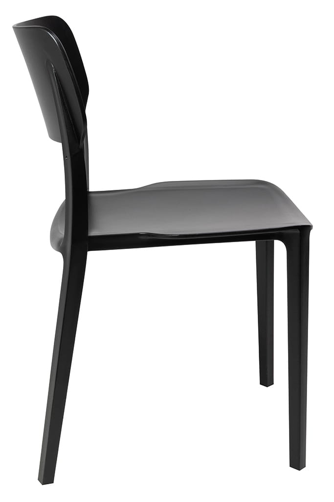 Krzesło w całości wykonane jest polipropylenu w kolorze czarnym.