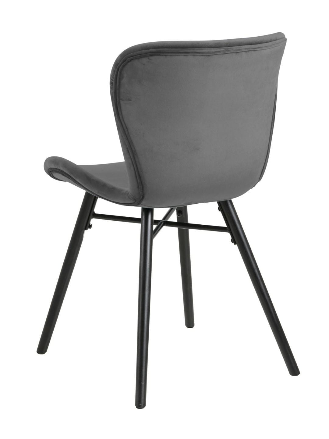 Krzesło Batilda to doskonałe rozwiązanie do salonu czy jadalni. Solidna podstawa wykonana z drewna dębowego pomalowanego na czarno, wzmocniona metalowym czarnym krzyżakiem zapewni stabilność podczas użytkowania. Siedzisko z tkaniny welwetowej dodatkowo z grubszym obszyciem wygląda bardzo efektownie. Tkanina użyta do tapicerowania siedziska to VIC dark grey 28. Waga krzesła to 6,15 kg. Maksymalne obciążenie krzesła: 120 kg Wysokość siedziska: 46,5 cm Szerokość siedziska: 47 cm Głębokość siedziska: 40 cm