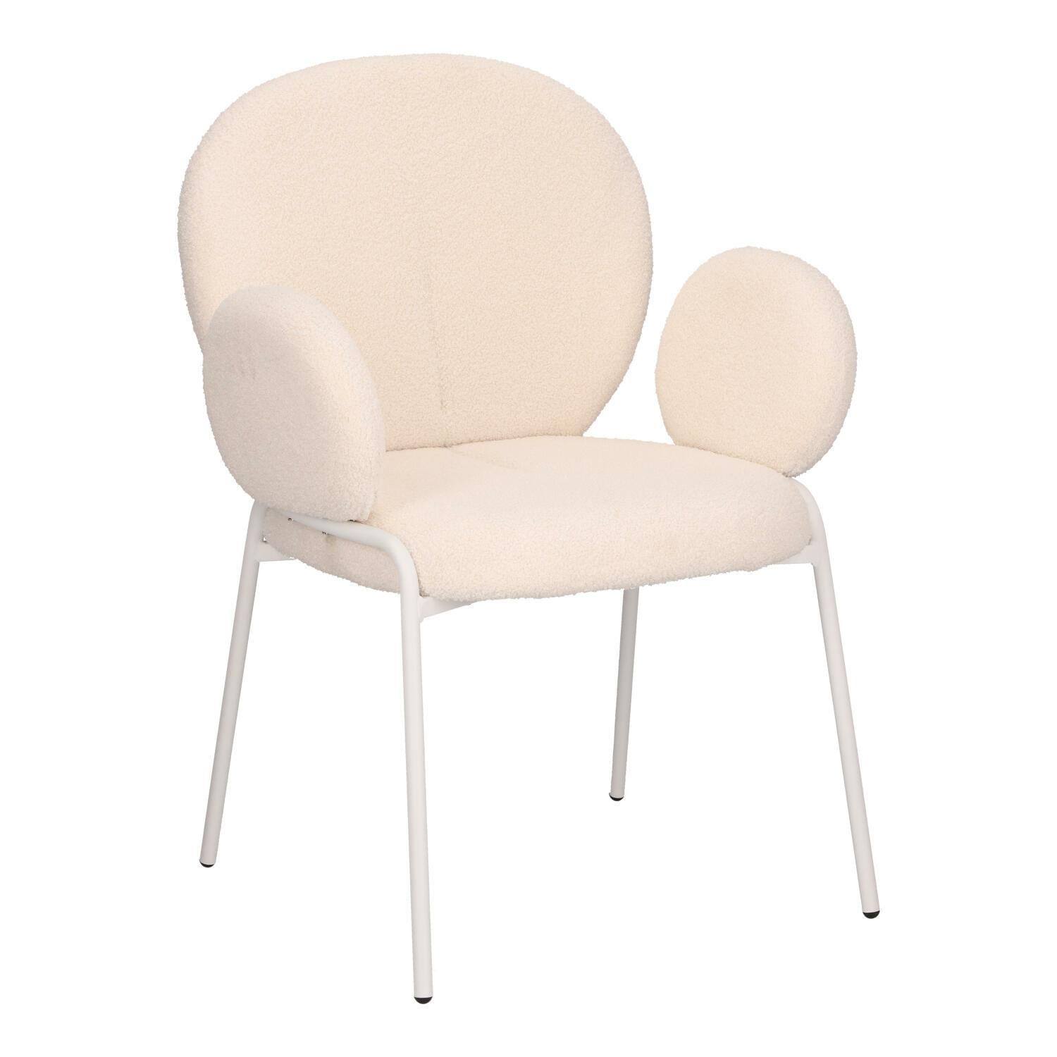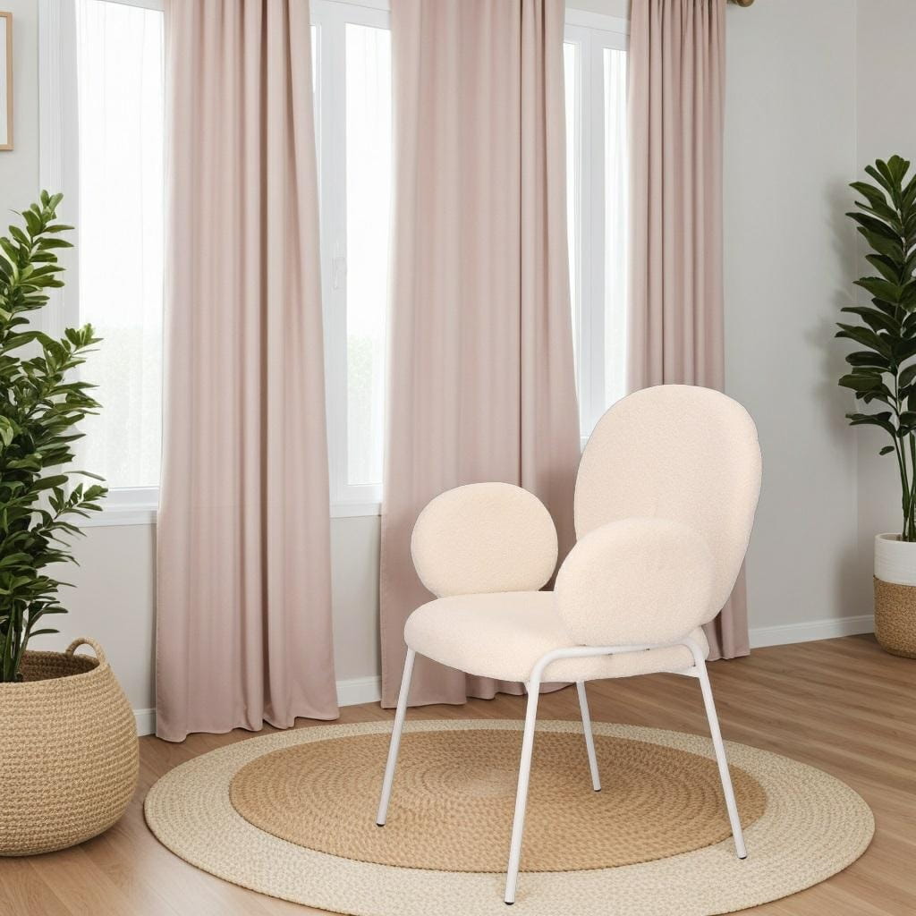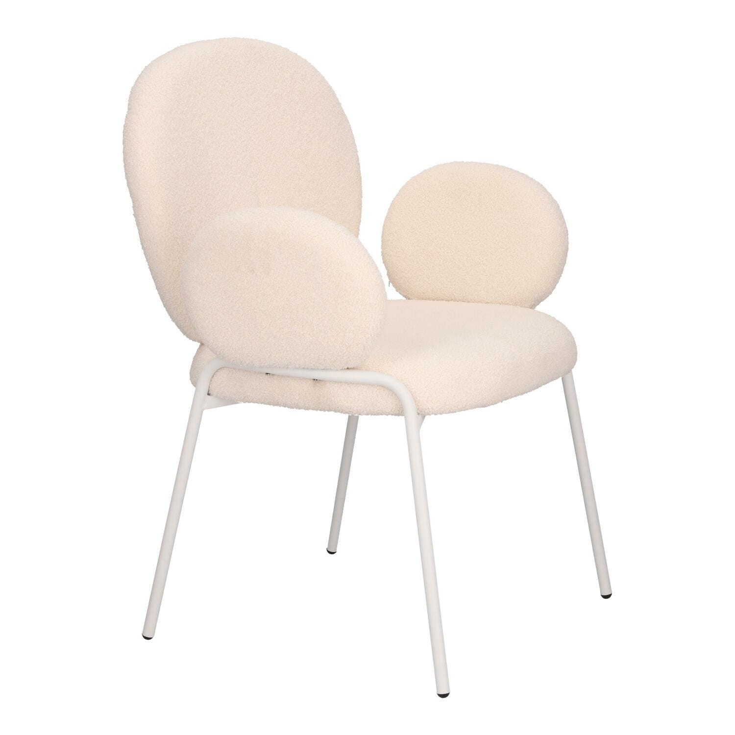Stylowe krzesło Bianco w stylu boho z czterema metalowymi nogami malowanymi proszkowo na biało będzie kwintesencją modnego i jasnego salonu. Tapicerowane tkaniną boucle, która jest miękka i stylowa, zapewnia wyjątkowy komfort i elegancję. Idealne do wnętrz w stylu naturalnym o jasnym bądź beżowym wykończeniu. Krzesło Bianco łączy funkcjonalność z estetyką. Doskonale sprawdzi się w salonie, jadalni czy sypialni, wprowadzając ciepły, przytulny klimat. Bardzo wygodne krzesło Bianco jest idealne do długiego siedzenia i relaksu przy stole z rodziną lub znajomymi. Wymaga montażu. Max. obciążenie 120 kg Nie sztapluje się Nie nadaje się do użytku zewnętrznego