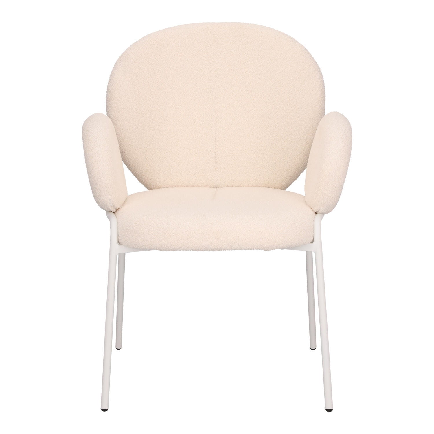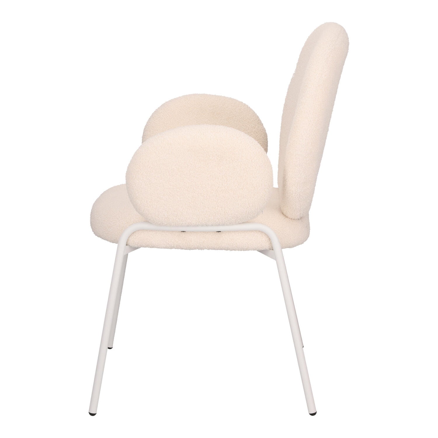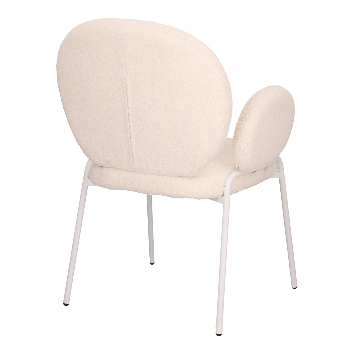 Stylowe krzesło Bianco w stylu boho z czterema metalowymi nogami malowanymi proszkowo na biało będzie kwintesencją modnego i jasnego salonu. Tapicerowane tkaniną boucle, która jest miękka i stylowa, zapewnia wyjątkowy komfort i elegancję. Idealne do wnętrz w stylu naturalnym o jasnym bądź beżowym wykończeniu. Krzesło Bianco łączy funkcjonalność z estetyką. Doskonale sprawdzi się w salonie, jadalni czy sypialni, wprowadzając ciepły, przytulny klimat. Bardzo wygodne krzesło Bianco jest idealne do długiego siedzenia i relaksu przy stole z rodziną lub znajomymi. Wymaga montażu. Max. obciążenie 120 kg Nie sztapluje się Nie nadaje się do użytku zewnętrznego