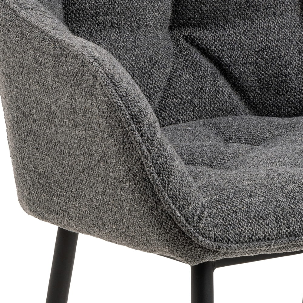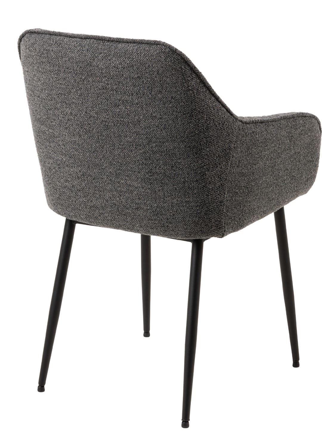 Krzesło Brooke jest krzesłem tapicerowanym miękką tkaniną Monza fabric anthracite 130. Krzesło posiada idealnie wyprofilowane podłokietniki, które tworzą z siedziskiem i oparciem spójną całość. Oparcie krzesła zostało ozdobione pikowaniem, które dodaje mu stylu. Podstawą krzesła są malowane proszkowo na czarno metalowe nogi. Maksymalne obciążenie: 120 kg. Waga Krzesła: 8,8 kg Wysokość oparcia: 37cm Szerokość siedziska: 41cm Głębokość siedziska: 40,5cm Ilość kartonów: 1 Wymiary kartonów: 61x58x52,5cm