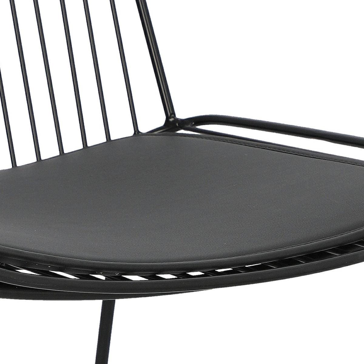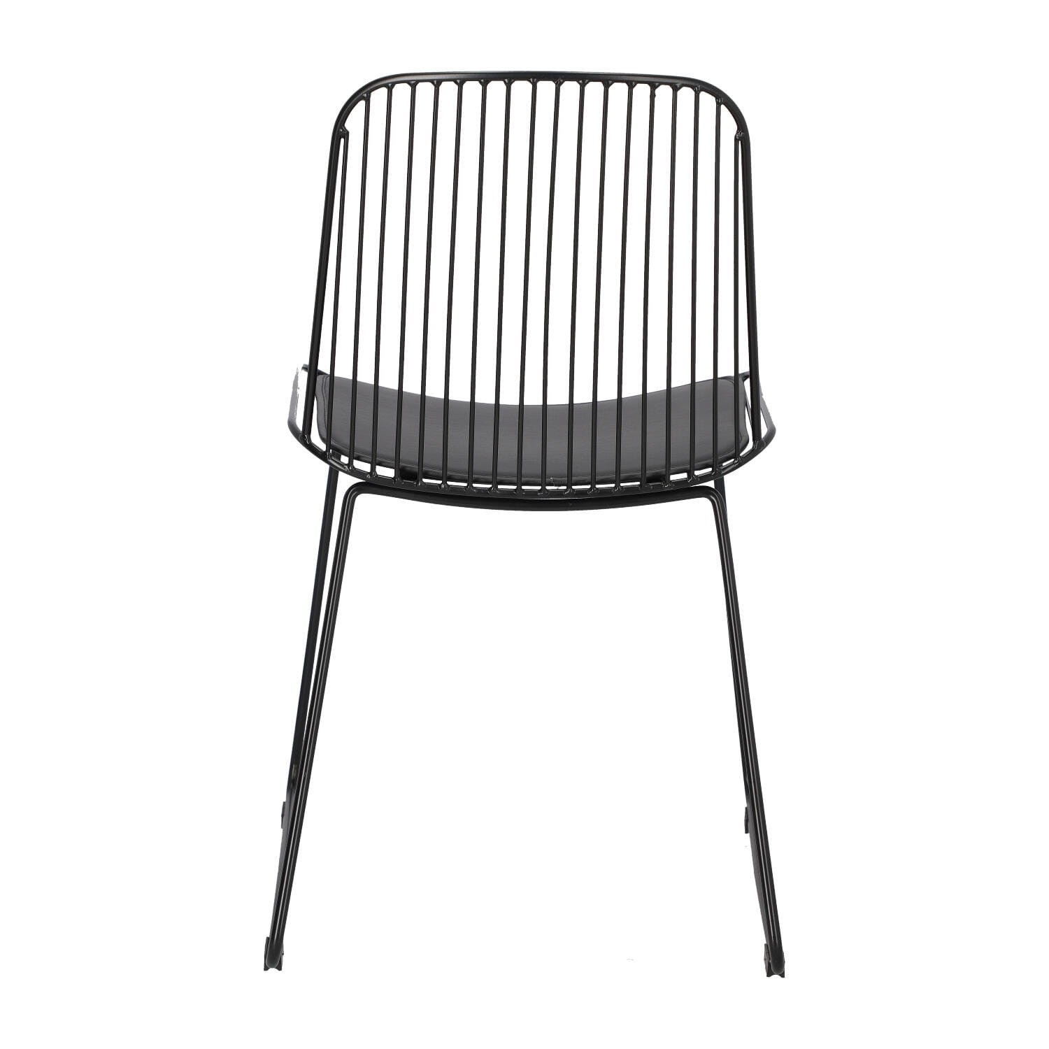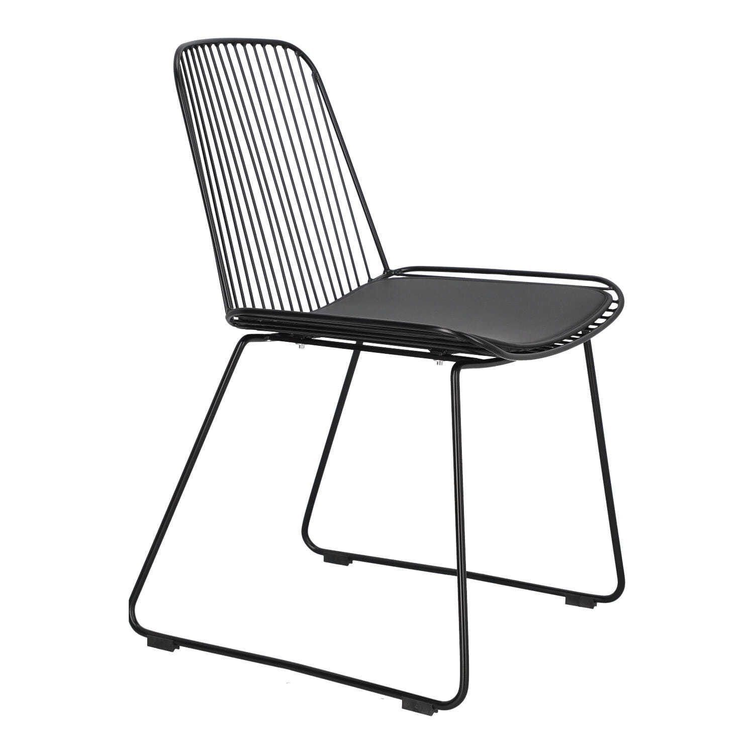 Czarne loftowe krzesło Dill z poduszką z eko skóry to odważny projekt do nowoczesnego wnętrza. Zachwycające w swojej prostocie krzesło będzie nie tylko wygodnym siedziskiem, ale również ozdobą salonu lub jadalni. Krzesło o siedzisku oraz oparciu wykonanych z wielu cienkich przęseł jest nietypowym meblem. Podstawa krzesła to płozy zabezpieczone nakładką z tworzywa, która zapobiega rysowaniu się powietrzni pod krzesłem. Krzesło z metalu pomalowanego proszkowo na czarno utrzymane zostały w półmatowym wykończeniu. Poduszka na siedzisku jest zdejmowana. Wymiary kartonu: 67x91x58 cm Waga: 28kg