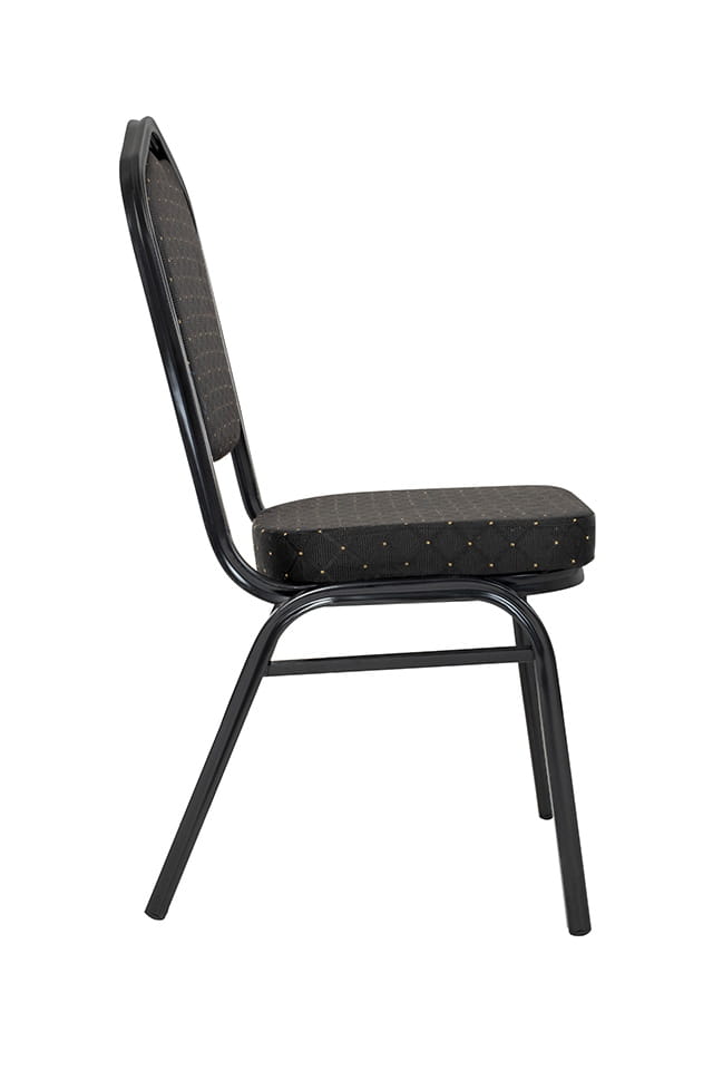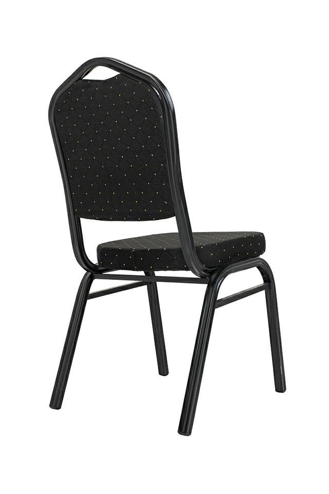 Ponadczasowy, klasyczny styl z nutą współczesności. Solidna konstrukcja ze stali malowanej proszkowo i szykownie zdobione obicie z tkaniny tapicerskiej o zwiększonej wytrzymałości na ścieranie gwarantują wyjątkowy styl na lata. Wygodne siedzisko wykonano ze specjalnie formowanej gąbki o właściwościach nieodkształcających. Czarne wykończenie wpisuje się w nowoczesną estetykę i sprawia, że krzesło prezentuje się niezwykle elegancko i luksusowo. Dużym atutem jest możliwość sztaplowania nawet do 19 sztuk, co czyni produkt także praktycznym. Krzesło Heron polecamy do wyposażenia sali bankietowych oraz konferencyjnych.