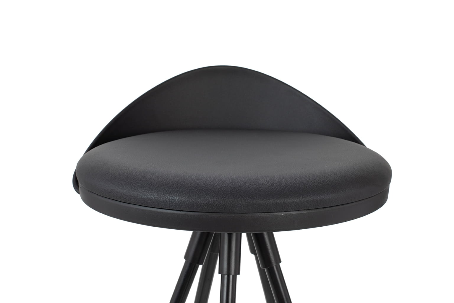 Niskie oparcie i siedzisko z poduszką z ekoskóry idealnie komponują się z długimi, zgrabnymi nóżkami