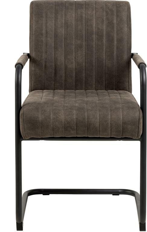 Krzesło z podłokietnikami Adele swoim designem nawiązuje do klimatu retro. Solidna metalowa podstawa w kolorze czarnym jest połączona z siedziskiem tapicerowanym antracytową tkaniną z mikrofibry ze specjalną powłoką, która nadaje jej surowy wygląd. Siedzisko wykonane jest na sprężynach kieszeniowych, co zapewnia wygodę podczas użytkowania. Kluczowe cechy Wygodne krzesło do jadalni z podłokietnikami w stylu retro Tapicerowane antracytową tkaniną z mikrofibry ze specjalną powłoką zapewniającą surowy wygląd Sprężyny kieszeniowe zapewniają wysoki komfort Pionowe szwy nadające teksturę Malowana proszkowo czarna podstawa Wykonane z materiałów ognioodpornych Ilość kartonów: 1 Wymiary kartonów: 61,5x55x73,5cm Waga kartonów: 11,7kg Szerokość siedziska: 46cm Głębokość siedziska: 45cm
