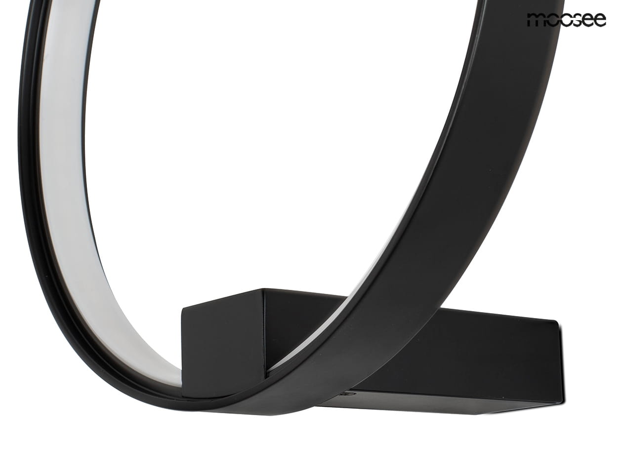 Kinkiet w kształcie okręgu wykonany w całości z aluminium w kolorze czarnym.