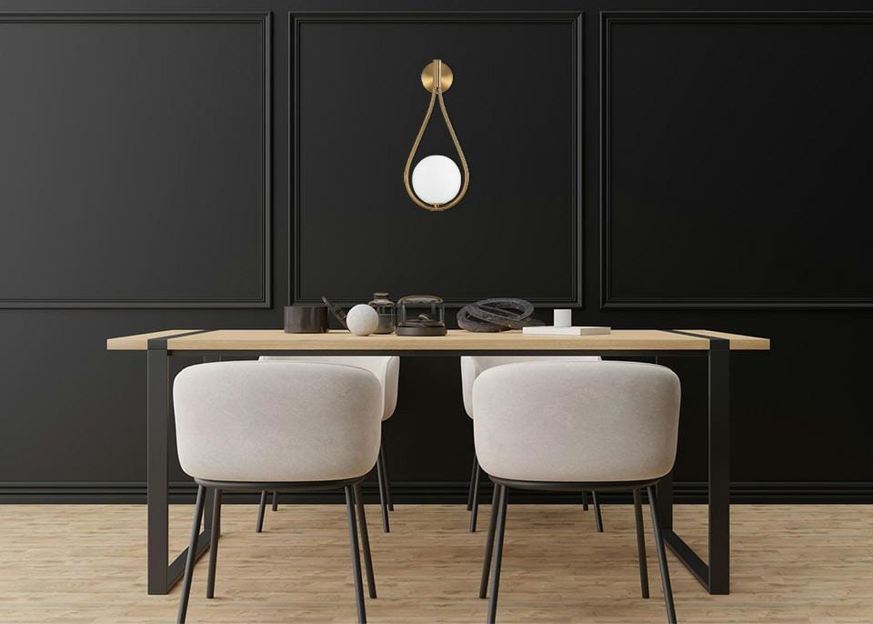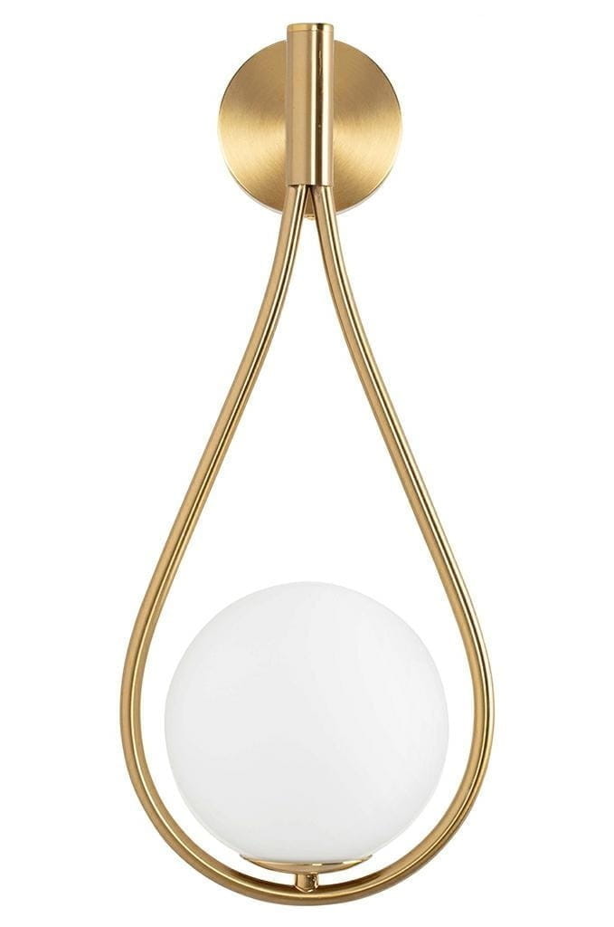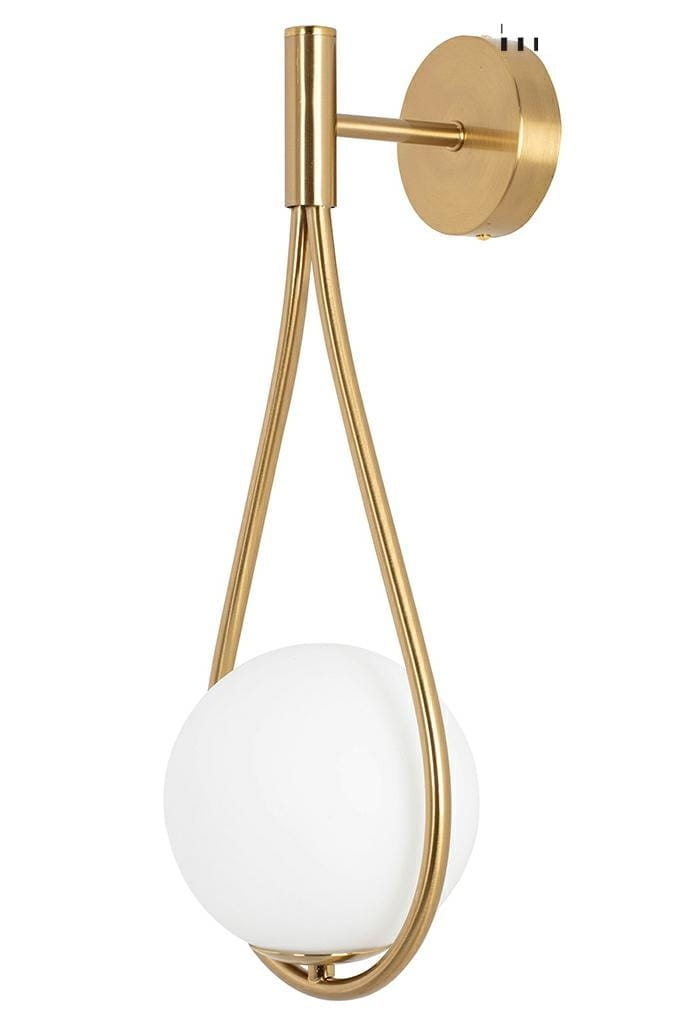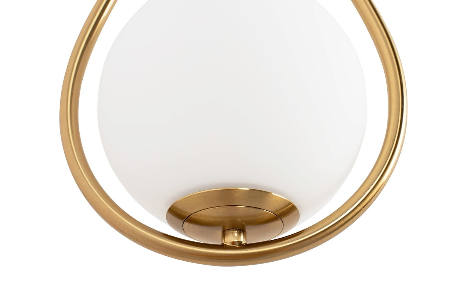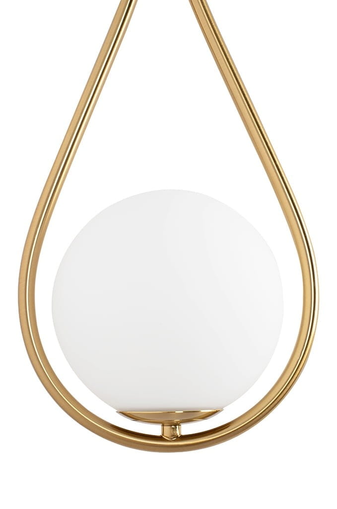 Klosz z mlecznego szkła skrywa źródło światła, które umieszczono na konstrukcji o ciekawym kształcie.