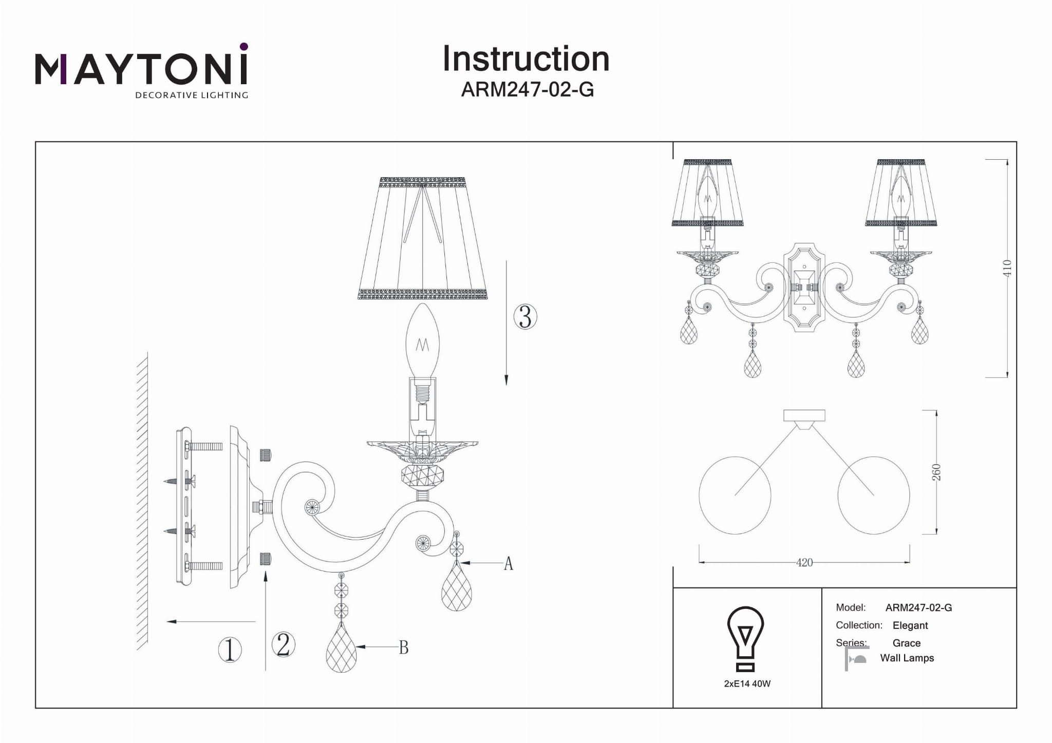 Elegancki Vintage Design: Ta lampa ścienna charakteryzuje się wyrafinowanym stylem vintage, idealnym do podkreślenia atmosfery w salonie, sypialni, kuchni, jadalni, biurze, gabinecie, korytarzu, kawiarni lub restauracji. Wymiary: Lampa ma wysokość 39 cm, długość 25 cm i szerokość 39 cm, co czyni ją znaczącym, ale stylowym dodatkiem do każdej przestrzeni. Dostosowywane Oświetlenie: Wymaga 2 żarówek E14 (nie dołączone) o maksymalnej mocy 40 watów każda, co pozwala na wybór żarówek pasujących do Twojego stylu i preferencji oświetleniowych. Materiały Premium: Rama wykonana jest z trwałego metalu z białym i złotym wykończeniem, natomiast abażur wykonany jest z eleganckiej organzy w klasycznym stożkowym kształcie. Wszechstronne Umiejscowienie: Idealna do różnych ustawień, ta lampa ścienna dodaje elegancji i uroku vintage każdemu pomieszczeniu lub przestrzeni komercyjnej.