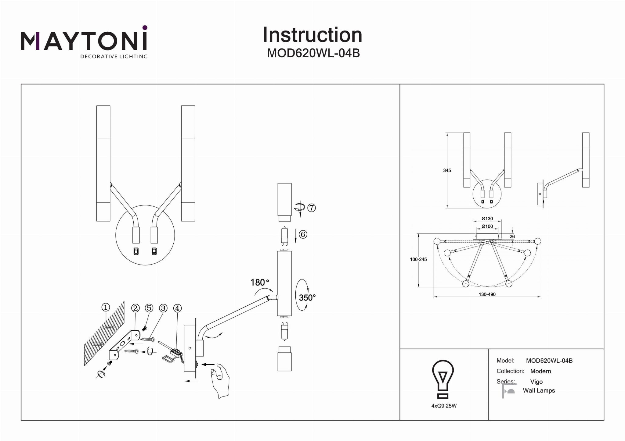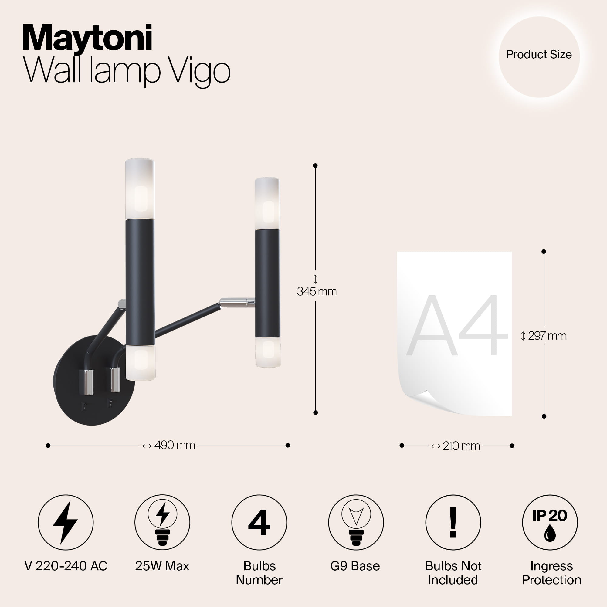 Nowoczesny Design Przemysłowy: Ta lampa ścienna charakteryzuje się eleganckim i współczesnym stylem przemysłowym, idealnym do podkreślenia estetyki Twojego salonu, sypialni, kuchni, jadalni, biura, gabinetu, korytarza, kawiarni lub restauracji. Wymiary: Lampa ma wysokość 34,5 cm, długość 24,5 cm i szerokość 49 cm, co czyni ją znaczącym, ale eleganckim dodatkiem do każdej przestrzeni. Dostosowywane Oświetlenie: Wymaga 4 żarówek G9 (nie dołączone) o maksymalnej mocy 25 watów każda, co pozwala na wybór żarówek pasujących do Twojego stylu i preferencji oświetleniowych. Trwała Konstrukcja: Rama wykonana jest z wysokiej jakości czarnego metalu, co zapewnia trwałość i ponadczasowy wygląd, podczas gdy białe szklane klosze w kształcie cylindra zapewniają miękkie, rozproszone światło. Wszechstronne Zastosowanie: Idealna do różnych ustawień, ta lampa ścienna jest wszechstronnym rozwiązaniem oświetleniowym, które uzupełnia zarówno nowoczesne, jak i przemysłowe wnętrza, dodając odrobinę wyrafinowania i funkcjonalności.