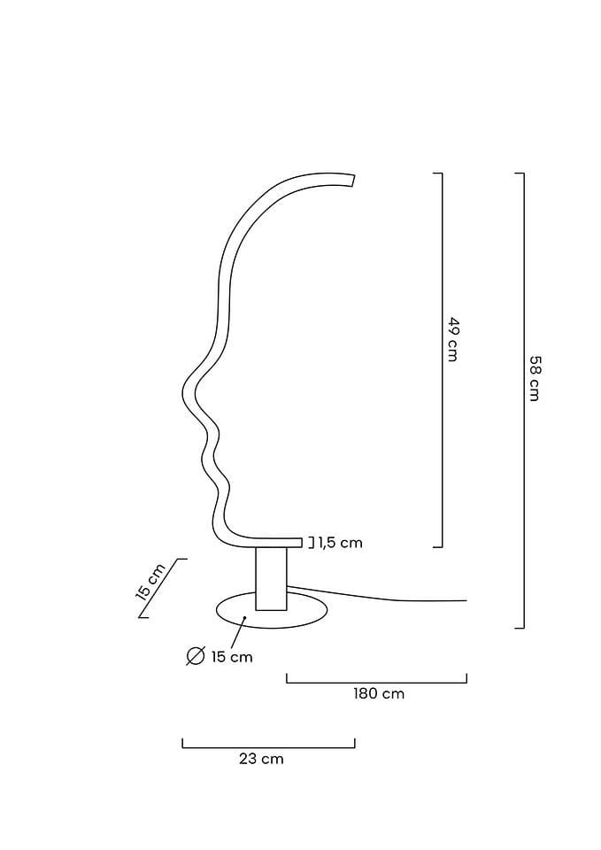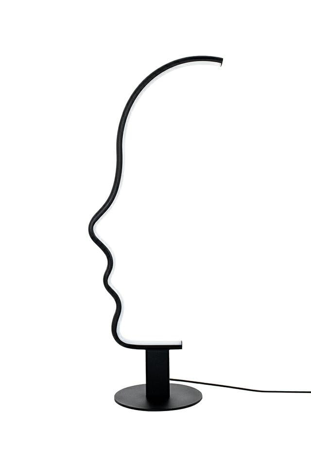 Lampa stołowa FACE TABLE czarna.Niesamowity, designerski projekt, kształtem przypominający profil kobiecej twarzy.Minimalistyczna oprawa wykonana ze stali i aluminium w kolorze czarnym, oprócz praktycznego oświetlenia stanie się również dekoracją przestrzeni.Lampa dostępna jest również w wersji podłogowej.Światło: moduł LED 8 W / 640 lm / 3000 KWymiary: wys. 58 cm / szer. 23 cm / gł. 15 cmKlosz: wys. 49 cm / szer. 23 cm / gł. 1,5 cm Podstawa: wys. 9 cm / śr. 15 cmPrzewód: 180 cm Waga netto: 0,7 kgWymiary opakowania: 62 x 22 x 10 cm
