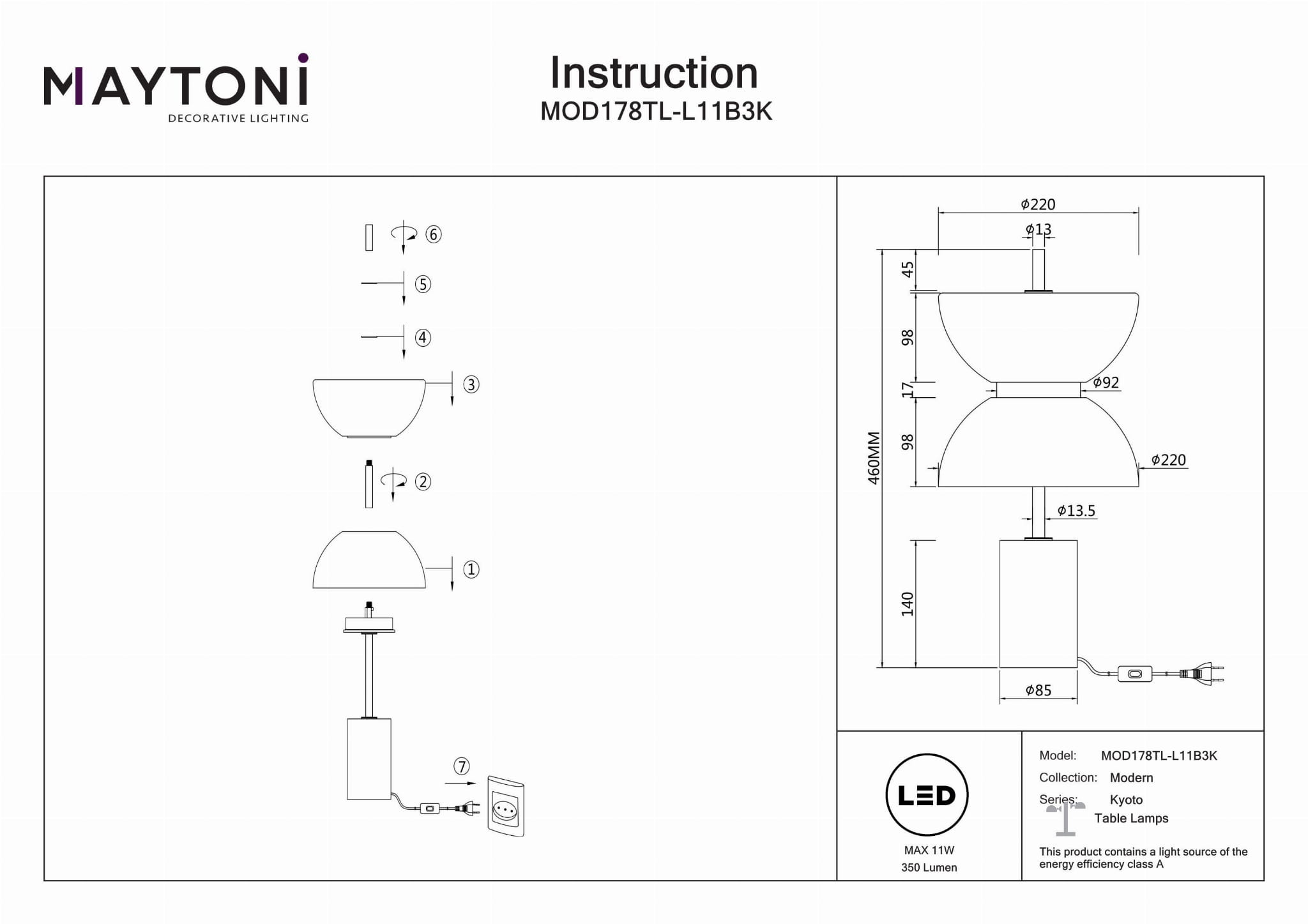 Elegancki Design Japandi: Ta lampa stołowa charakteryzuje się wyrafinowanym azjatyckim stylem Japandi, idealnym do podkreślenia estetyki Twojego salonu, sypialni, kuchni, jadalni, biura lub pokoju do nauki. Optymalne Oświetlenie: Wyposażona w lampę LED emitującą ciepłe światło o temperaturze 3000 kelwinów i jasności 350 lumenów, zapewniającą przytulną i zachęcającą atmosferę. Lampa posiada również Wskaźnik Oddawania Barw (CRI) na poziomie 80, co gwarantuje dokładne odwzorowanie kolorów. Materiały Premium: Rama lampy wykonana jest z trwałego metalu i luksusowego marmuru w eleganckim czarnym kolorze, natomiast klosz z wysokiej jakości białego szkła, dodając elegancji każdemu wnętrzu. Kompaktowa i Stylowa: O wysokości 46 cm i średnicy 22 cm, ta lampa stołowa została zaprojektowana tak, aby idealnie wpasować się w różne aranżacje wnętrz, nie zajmując przy tym zbyt wiele miejsca. Energooszczędna: Zaklasyfikowana do klasy efektywności energetycznej A, ta lampa nie tylko zapewnia piękne oświetlenie, ale także pomaga oszczędzać na kosztach energii, co czyni ją ekologicznym wyborem do Twojego domu lub biura.