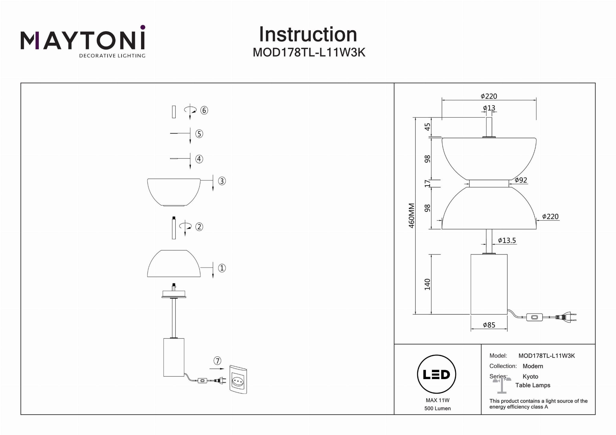 Elegancki Design Japandi: Ta lampa stołowa łączy w sobie estetykę azjatycką i skandynawską, idealna do wzbogacenia wystroju Twojego salonu, sypialni, kuchni, jadalni, biura lub pokoju do nauki. Optymalne Oświetlenie: Wyposażona w lampę LED o ciepłej temperaturze barwowej 3000 Kelvinów, zapewniającą 500 lumenów światła z Wskaźnikiem Oddawania Barw (CRI) wynoszącym 80 dla naturalnego i żywego oświetlenia. Materiały Premium: Wykonana z solidnej białej metalowej i marmurowej ramy, uzupełniona eleganckim białym kloszem ze szkła, zapewniając trwałość i wyrafinowany wygląd. Energooszczędna: Klasyfikowana w klasie efektywności energetycznej A, ta lampa jest zaprojektowana tak, aby zużywać mniej energii, jednocześnie dostarczając wysokiej jakości oświetlenie, co czyni ją ekologicznym wyborem. Idealne Wymiary: O wysokości 46 cm i średnicy 22 cm, ta lampa jest idealna do różnych przestrzeni, oferując zarówno funkcjonalność, jak i styl, nie zajmując przy tym zbyt wiele miejsca.