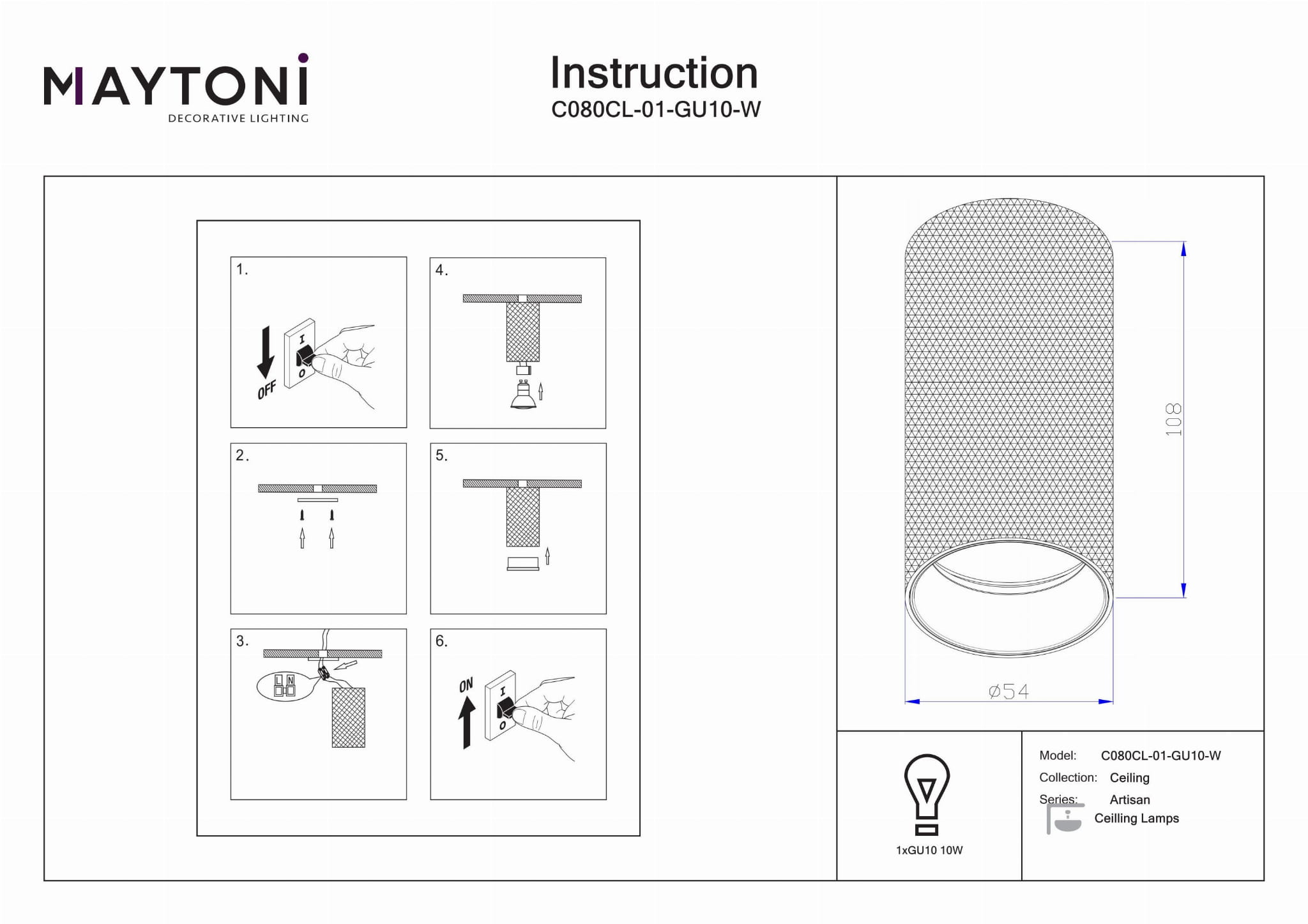 Nowoczesny Design Przemysłowy: Podnieś standard swojego wnętrza dzięki tej eleganckiej lampie sufitowej, idealnej do salonów, sypialni, kuchni, jadalni, biur, gabinetów, korytarzy, kawiarni i restauracji. Kompaktowe Wymiary: Z wysokością 10,8 cm i średnicą 5,4 cm, ta lampa została zaprojektowana tak, aby idealnie wpasować się w każde pomieszczenie, nie przytłaczając przestrzeni. Dostosowywane Oświetlenie: Wymaga jednej żarówki GU10 (nie dołączona) o maksymalnej mocy 10 watów, co pozwala na wybór żarówki najlepiej odpowiadającej Twojemu stylowi i preferencjom oświetleniowym. Trwała Konstrukcja: Wykonana z białej aluminiowej ramy, ta lampa oferuje zarówno trwałość, jak i nowoczesną estetykę, która uzupełnia każde wnętrze. Wszechstronne Zastosowanie: Idealna do różnych ustawień, ta lampa punktowa zapewnia skupione oświetlenie, które poprawia atmosferę i funkcjonalność każdego pomieszczenia.