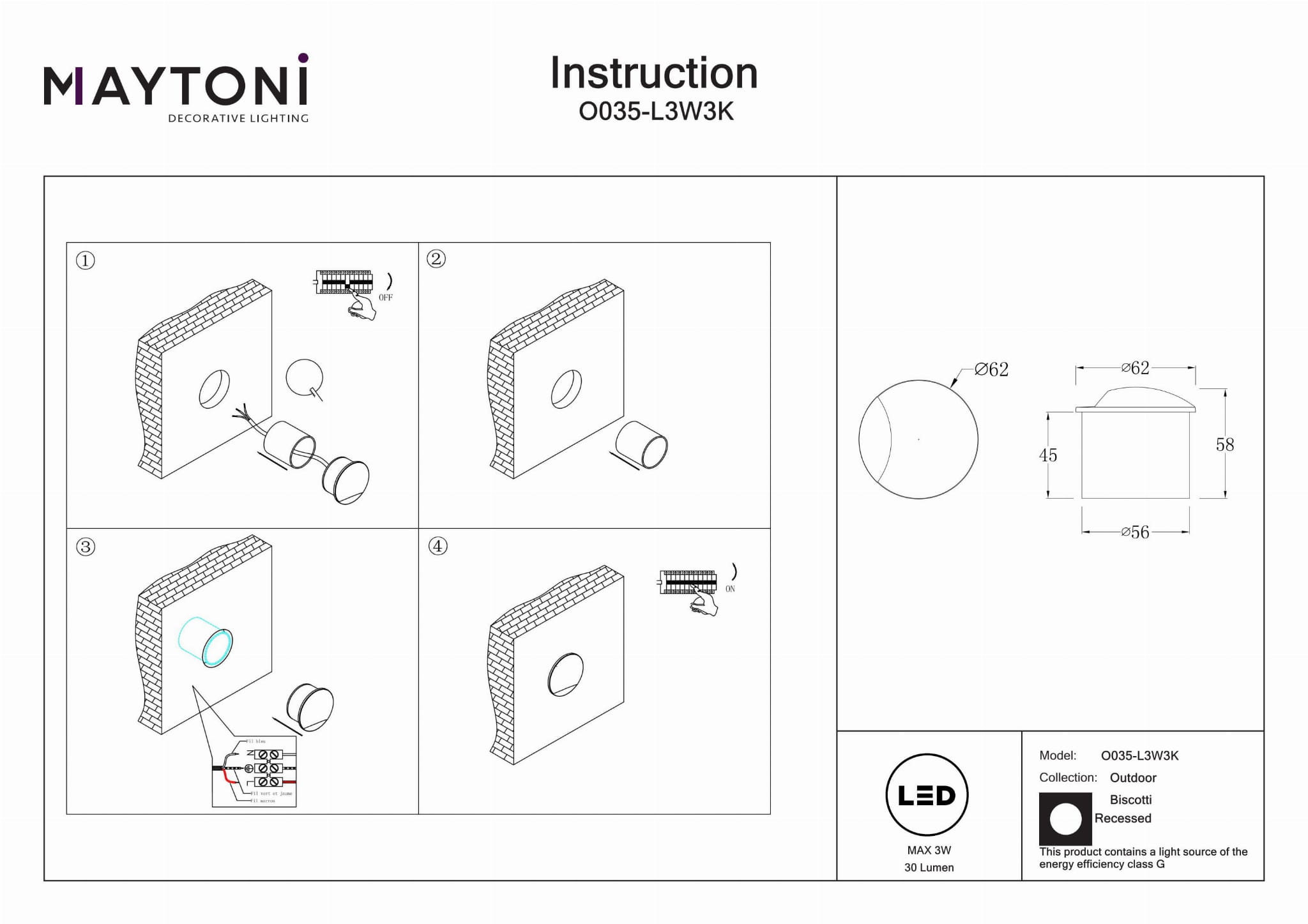 Trwałe i Odporne na Warunki Atmosferyczne: Oświetlenie zewnętrzne o klasie ochrony IP65, zaprojektowane do wytrzymywania surowych warunków pogodowych, idealne do domków ogrodowych, tarasów, podjazdów, ścieżek, patio, balkonów i werand. Kompaktowy i Stylowy Design: Charakteryzuje się elegancką, białą ramą aluminiową z okrągłym otworem montażowym, o średnicy 6,2 cm i otworze montażowym o średnicy 5,6 cm. Energooszczędne Oświetlenie LED: Wyposażone w lampę LED o temperaturze barwowej 3000 Kelvinów, która zapewnia ciepłe, przyjemne światło o jasności 30 lumenów. Wysokiej Jakości Oświetlenie: Posiada Wskaźnik Oddawania Barw (CRI) na poziomie 80, co zapewnia żywe i dokładne odwzorowanie kolorów dla lepszego efektu wizualnego. Łatwy Montaż: Prosty w montażu i instalacji, co czyni go wygodnym rozwiązaniem oświetleniowym, które zwiększa bezpieczeństwo i estetykę Twoich przestrzeni zewnętrznych.
