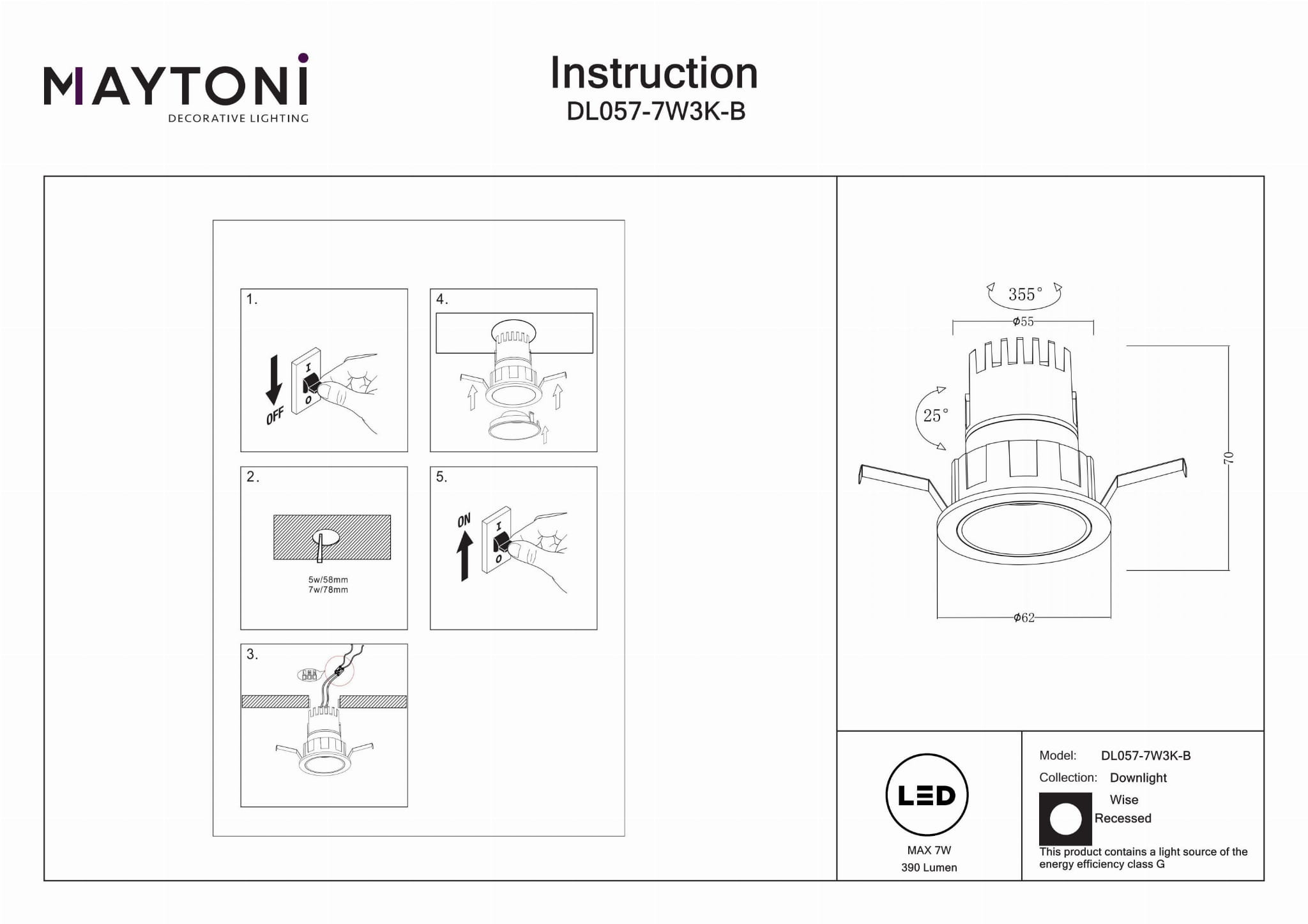 Nowoczesny Design Przemysłowy: Elegancki wbudowany sufitowy reflektor punktowy idealny do salonów, sypialni, kuchni, jadalni, biur, gabinetów, korytarzy, kawiarni i restauracji. Kompaktowe Wymiary: Wysokość 7 cm i średnica 6,2 cm, z okrągłym otworem montażowym o średnicy 5,8 cm, zapewniające bezproblemowe dopasowanie do różnych przestrzeni. Wysokiej Jakości Oświetlenie: Wyposażony w lampę LED o temperaturze barwowej 3000 kelwinów i jasności 390 lumenów, zapewniającą ciepłe, jasne światło z wysokim wskaźnikiem oddawania barw (CRI) wynoszącym 90, co gwarantuje realistyczne kolory. Trwała Konstrukcja: Czarna rama wykonana z wytrzymałego aluminium i plastiku, łącząca trwałość z stylowym, nowoczesnym wyglądem. Łatwa Instalacja: Zaprojektowany z myślą o prostym montażu, co czyni go wygodnym rozwiązaniem oświetleniowym zarówno do użytku domowego, jak i komercyjnego.