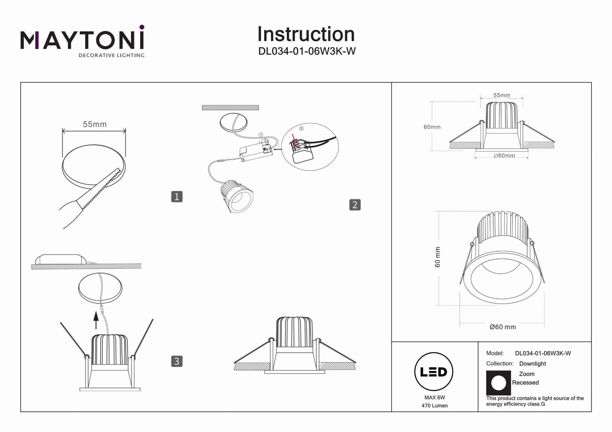 Nowoczesny Design Przemysłowy: Elegancki wbudowany sufitowy reflektor punktowy idealny do salonów, sypialni, kuchni, jadalni, biur, gabinetów, korytarzy, kawiarni i restauracji. Kompaktowe Wymiary: Wysokość 6 cm i średnica 6 cm, z okrągłym otworem montażowym o średnicy 5,5 cm, zapewniające bezproblemowe dopasowanie do różnych przestrzeni. Wysokiej Jakości Oświetlenie: Wyposażony w lampę LED, która zapewnia 3000 kelwinów i 470 lumenów, dostarczając ciepłe i jasne światło. Doskonała Dokładność Kolorów: Posiada Wskaźnik Oddawania Barw (CRI) na poziomie 90, zapewniając realistyczne odwzorowanie kolorów dla żywego i naturalnego wyglądu. Trwały i Stylowy: Biała ramka wykonana z wysokiej jakości aluminium, łącząca trwałość z nowoczesną estetyką.