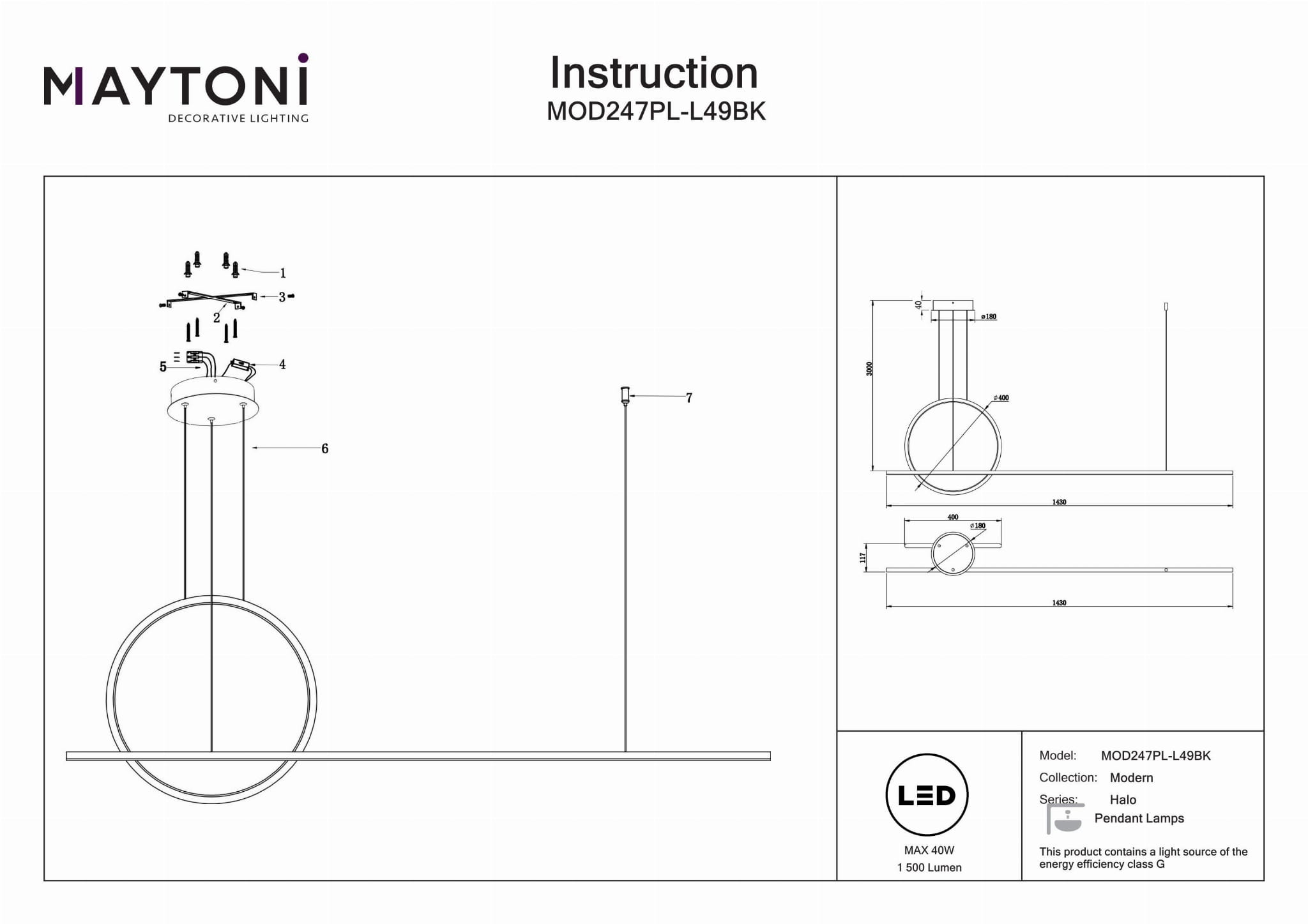 Wszechstronny Nowoczesny Design Przemysłowy: Idealny do salonów, sypialni, kuchni, jadalni, biur, gabinetów, korytarzy, kawiarni i restauracji. Regulowana Wysokość: Łatwo dostosuj wysokość od minimum 64 cm do maksimum 300 cm, aby dopasować do każdej przestrzeni. Efektywne Oświetlenie LED: Posiada regulowaną temperaturę barwową od 3000 do 4000 kelwinów i dostarcza 1500 lumenów z Wskaźnikiem Oddawania Barw (CRI) wynoszącym 80. Trwała i Stylowa Konstrukcja: Czarna aluminiowa rama w połączeniu z eleganckim białym kloszem dla nowoczesnego wyglądu. Hojne Wymiary: Mierzy 300 cm wysokości, 143 cm długości i 11,7 cm szerokości, co czyni go efektownym elementem centralnym w każdym pomieszczeniu.