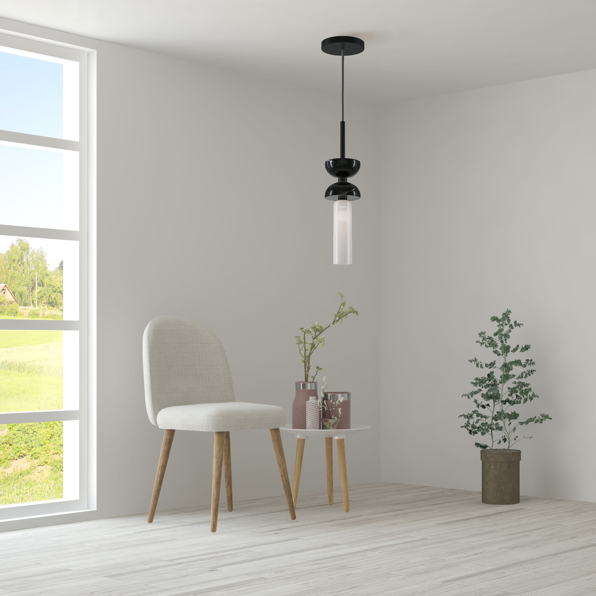 Elegancki Design Japandi: Ta lampa wisząca łączy estetykę azjatycką i skandynawską, idealna do dodania odrobiny wyrafinowania w salonie, sypialni, kuchni, jadalni, biurze, gabinecie, korytarzu, kawiarni lub restauracji. Wszechstronne Oświetlenie: Wymaga jednej żarówki G9 (nie dołączona) o maksymalnej mocy 28 watów, co pozwala na wybór żarówki najlepiej odpowiadającej Twojemu stylowi i preferencjom oświetleniowym. Materiały Premium: Posiada solidną ramę z czarnego metalu i marmuru w połączeniu z eleganckim białym kloszem ze szkła, co zapewnia trwałość i ponadczasowy wygląd. Idealne Wymiary: Z wysokością 336,5 cm i średnicą 10 cm, ta lampa wisząca jest zaprojektowana tak, aby przyciągać uwagę, nie przytłaczając przestrzeni. Łatwa Instalacja: Zaprojektowana z myślą o bezproblemowym montażu, ta lampa wisząca jest stylowym i funkcjonalnym dodatkiem do każdego pomieszczenia, wzbogacając Twoje wnętrze swoim minimalistycznym, ale efektownym designem.