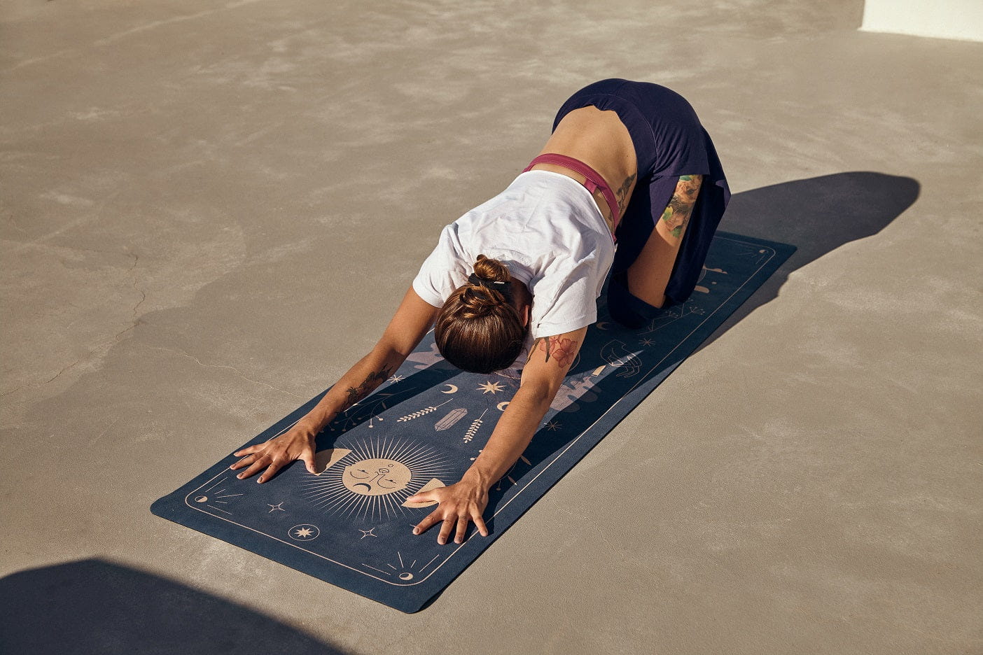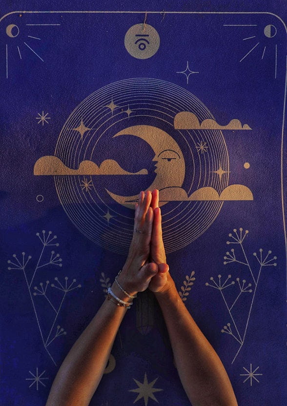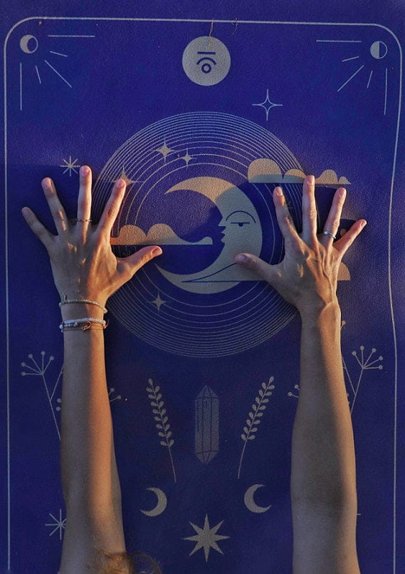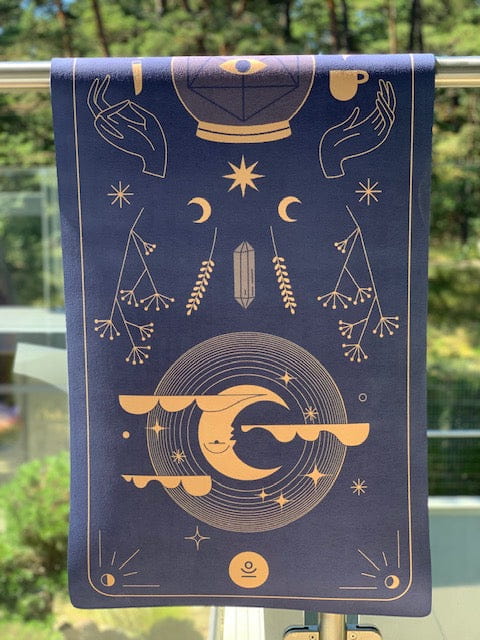 Podróżna mata do jogi Magic pełna jest odniesień magicznych; mamy tu palo-santo, zioła, kwiaty i magiczne kryształy, a także takie atrybuty nowoczesnej czarodziejki jak magiczna kula, którą ułożyliśmy w centrum, wypełniona geometrycznym wzorem, przypominającym ryciny astrologiczne z poprzednich wieków. W centrum Trzecie Oko. Wzór jest inspirowany kartami Tarota - klimatyczny, ale jednocześnie niezobowiązujący i elegancki. Pięknie odnajdzie się w każdej przestrzeni jogowej.