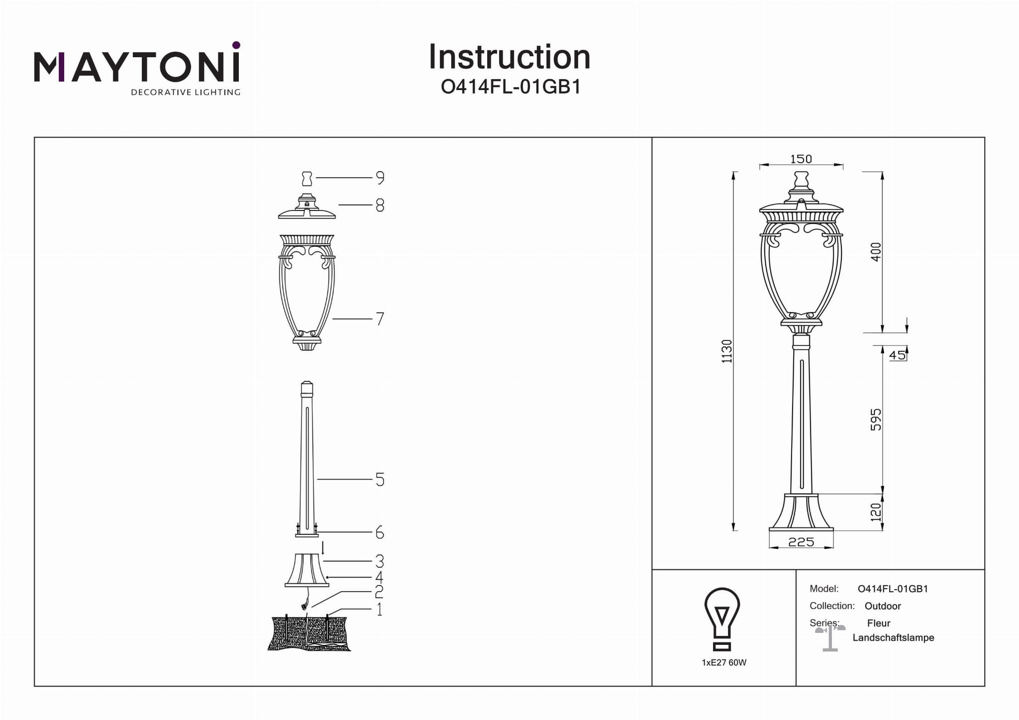 Trwały i Stylowy Design: Wykonane z wysokiej jakości aluminium z ramą w kolorze czarnym i złotym, to oświetlenie zewnętrzne dodaje elegancji każdemu ogrodowi, domowi, tarasowi, podjazdowi, ścieżce, patio, balkonowi lub werandzie. Odporność na Warunki Atmosferyczne: Posiadając klasę ochrony IP44, to światło jest zaprojektowane tak, aby wytrzymać różne warunki pogodowe, zapewniając długotrwałą wydajność i niezawodność. Wszechstronne Wymiary: Z wysokością 113 cm, długością 15 cm, szerokością 15 cm i średnicą 15 cm, ta oprawa oświetleniowa jest idealna do oświetlania dużych przestrzeni na zewnątrz. Wysokość łańcucha wynosi 22,5 cm, co zapewnia elastyczność w montażu. Dostosowywane Oświetlenie: Wymaga jednej żarówki E27 (nie dołączona) o maksymalnej mocy 60 watów, co pozwala na wybór żarówki najlepiej odpowiadającej Twojemu stylowi i preferencjom oświetleniowym. Łatwy Montaż: Zaprojektowane z myślą o prostym montażu, to oświetlenie zewnętrzne jest idealne do poprawy atmosfery i bezpieczeństwa Twoich przestrzeni na zewnątrz przy minimalnym wysiłku.