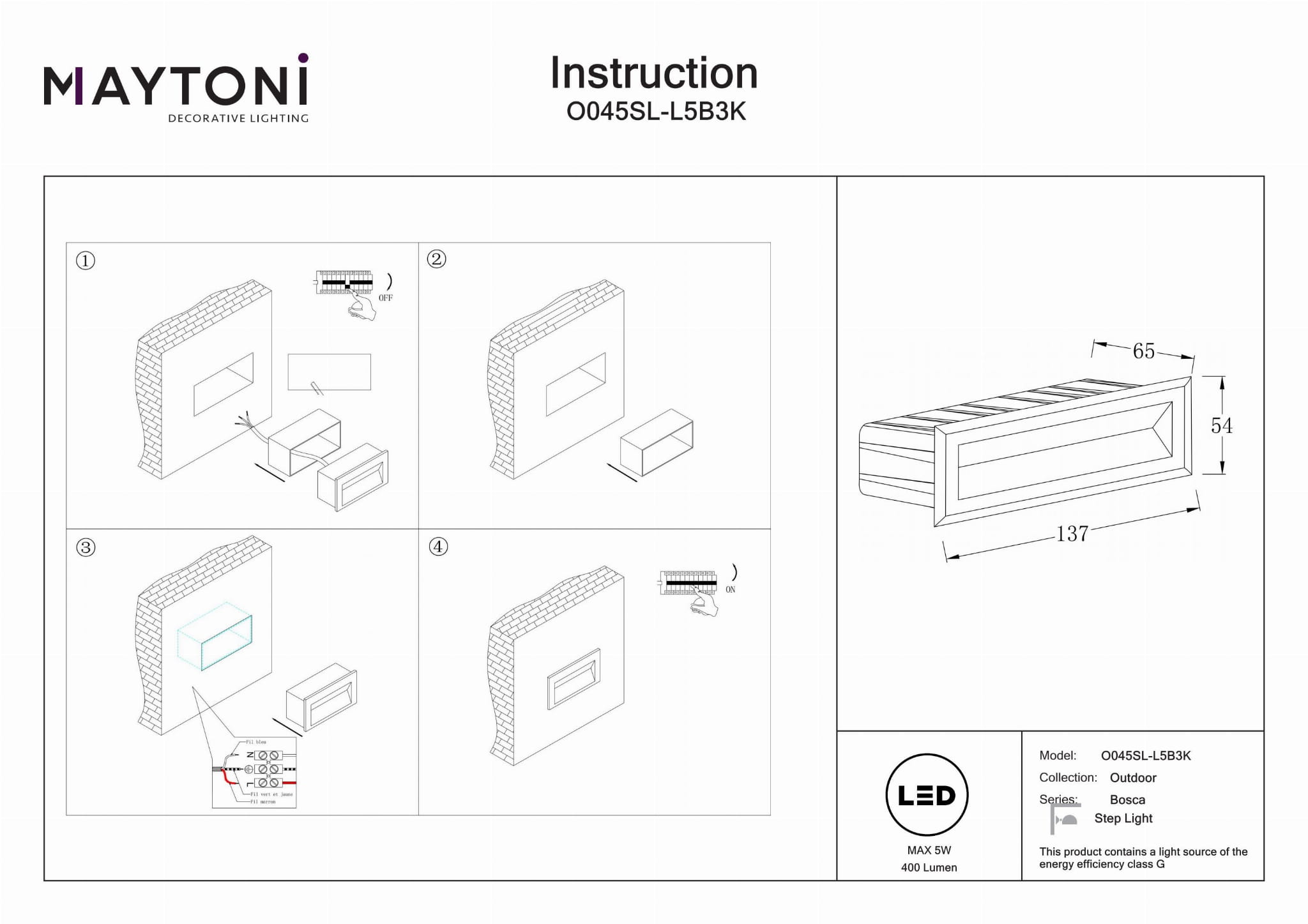 Trwałe i Odporne na Warunki Atmosferyczne: Oświetlenie zewnętrzne o klasie ochrony IP65, zaprojektowane do wytrzymywania surowych warunków pogodowych, idealne do domków ogrodowych, tarasów, podjazdów, ścieżek, patio, balkonów i werand. Kompaktowy i Stylowy Design: Elegancka czarna metalowa rama o wymiarach 6,5 cm wysokości, 13,7 cm długości i 5,4 cm szerokości, z prostokątnym otworem montażowym o wymiarach 12,7*4,3 cm dla łatwej instalacji. Jasne i Efektywne Oświetlenie: Wyposażone w wysokiej jakości lampę LED emitującą 400 lumenów ciepłego białego światła o temperaturze 3000 kelwinów, zapewniając doskonałą widoczność i atmosferę. Wysoka Dokładność Kolorów: Z Wskaźnikiem Oddawania Barw (CRI) wynoszącym 80, to oświetlenie zewnętrzne zapewnia, że kolory wyglądają bardziej naturalnie i żywo, podnosząc estetyczny wygląd Twoich przestrzeni na zewnątrz. Wszechstronne Zastosowanie: Idealne do poprawy bezpieczeństwa i estetyki w różnych ustawieniach zewnętrznych, w tym na schodach, ścieżkach i wejściach, dodając zarówno funkcjonalność, jak i styl do Twojego zewnętrznego wystroju.