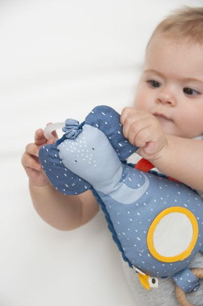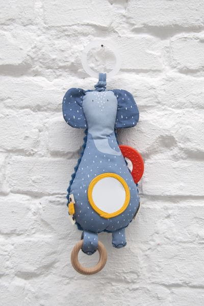 Zawieszka z lusterkiem na brzuszku to miękka i miła w dotyku zabawka, która pobudza wyobraźnie każdego maluszka. Pozwala odkrywać kolory, dźwięki, tekstury i przyglądać się sobie w mini lusterku. Kontrastowe kolory stymulują zmysł wzrok, różnego rodzaju tekstury materiałów i wystające elementy zmysł dotyku, a intrygująca dźwiękiem grzechotka zmysł słuchu. Można ją przymocować do łóżeczka, nosidełka, wózka lub pałąka fotelika samochodowego.