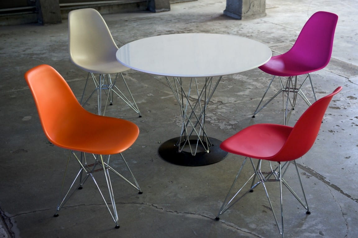 Stylowy stół Cyclone inspirowany projektem Isamu Noguchi.,Blat oraz podstawa wykonana z lakierowanego tworzywa sztucznego, a łączenie z chromowanej stali.,Stół bardzo praktyczny oraz stylowy, doskonale komponuje się z nowoczesnymi pomieszczeniami.,Do stołu polecamy krzesła insp. projektem DSR oraz DAR. Średnica podstawy stołu to 49cm. Maksymalne obciążenie stołu 50kg.
