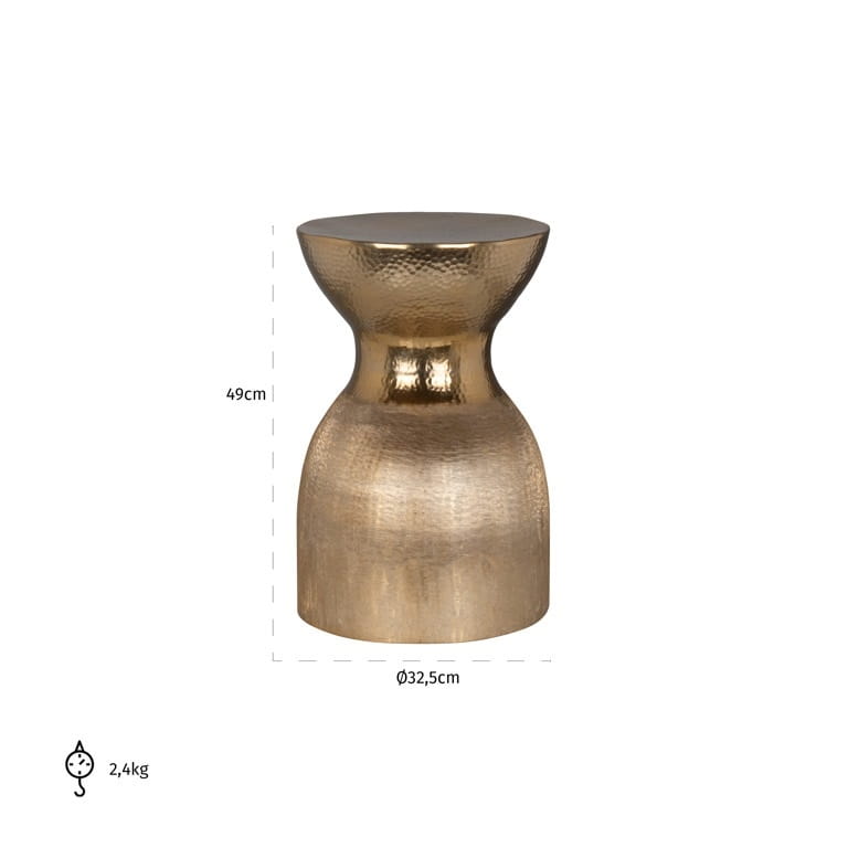 Elegancki stolik o kształcie klepsydry został wykonany z wysokiej jakości aluminium.