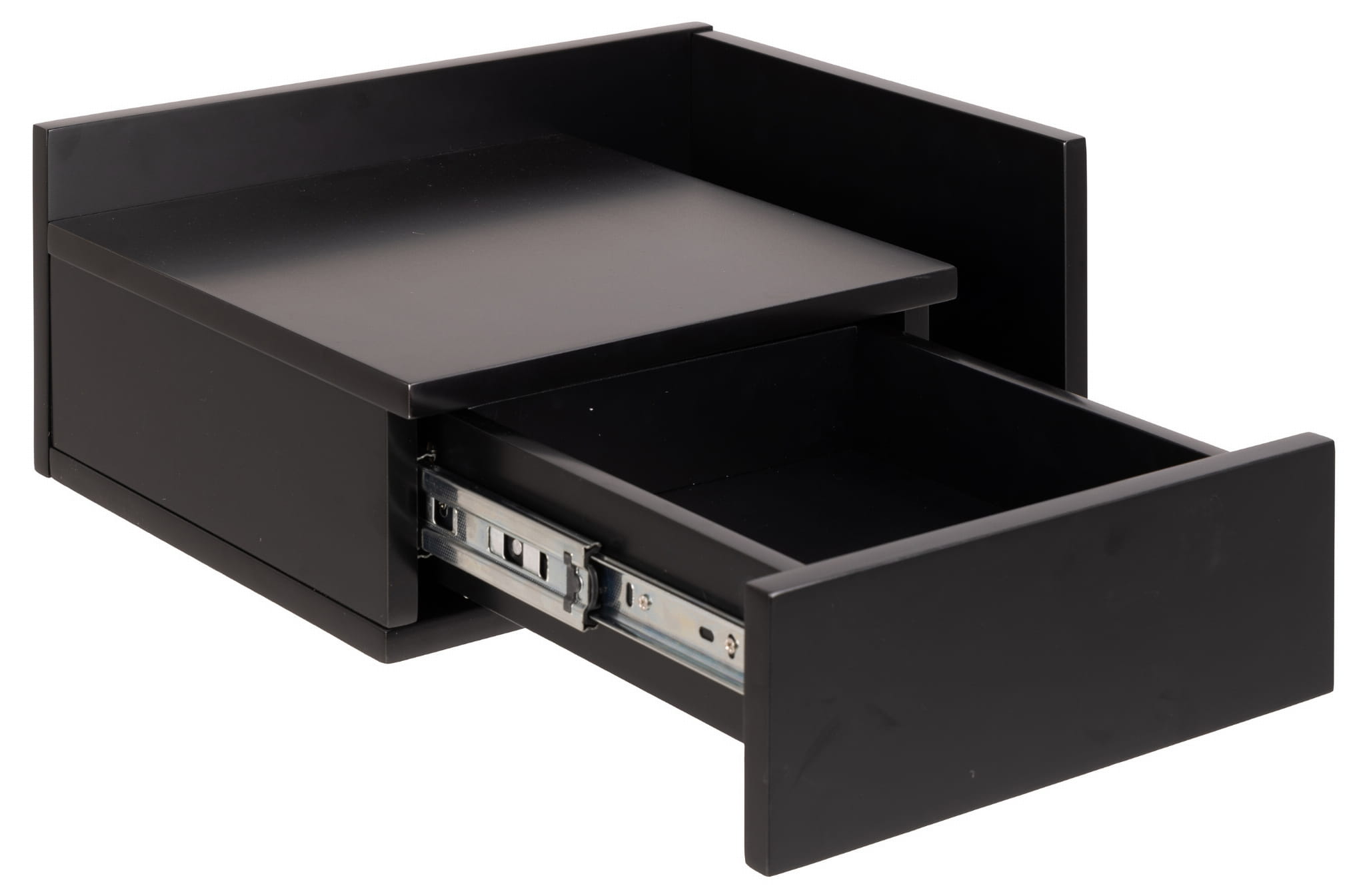 Szafka Ashlan doskonale nada się jako szafka nocna. Jej minimalistyczny kształt i geometria sprawiają że doskonale odnajdzie się w nowoczesnej sypialni, ale również salonie. Szafka wykonana została z płyty MDF. Szafkę Ashlan można postawić koło łóżka, ale również bez mniejszego problemu powiesić na ścianie. Szuflada pomieści drobne przedmioty a przestrzeń między blatami sprawdzi się jako półka na książki czy ulubioną gazetę. Szafka oprócz szuflady posiada także niewielką boczną półkę. Ilość kartonów: 1 Wymiary kartonów: 45,8x34,5x9cm Waga kartonów: 6,1kg