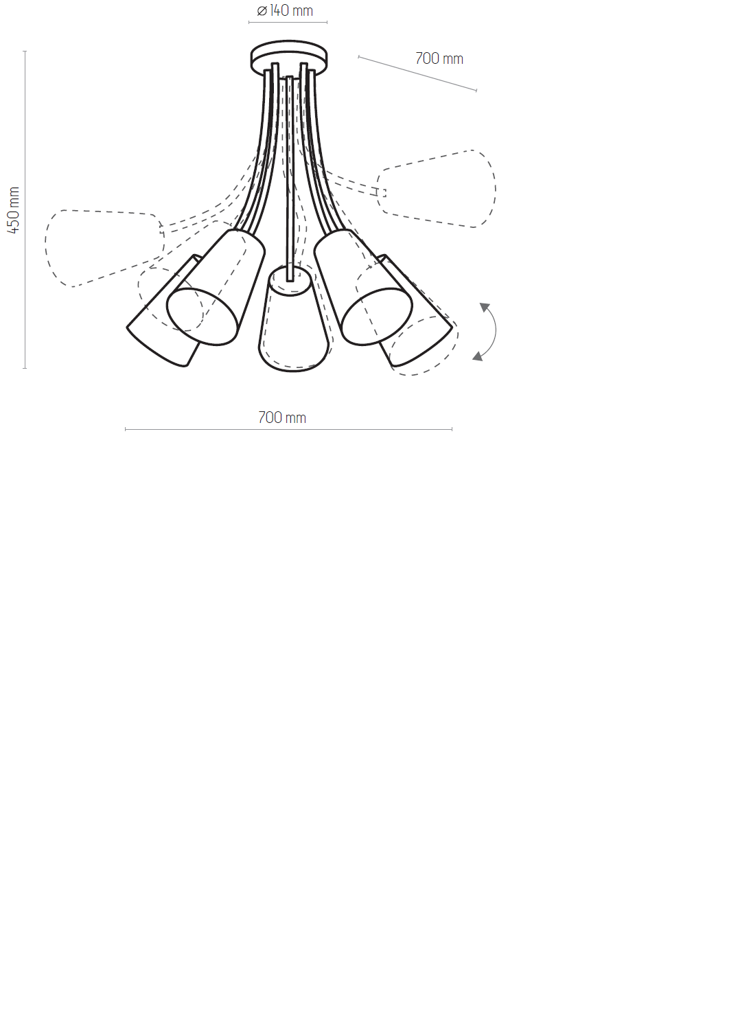 | Wymiary lampy (mm) - długość / szerokość / wysokość | 700/700/500 |
