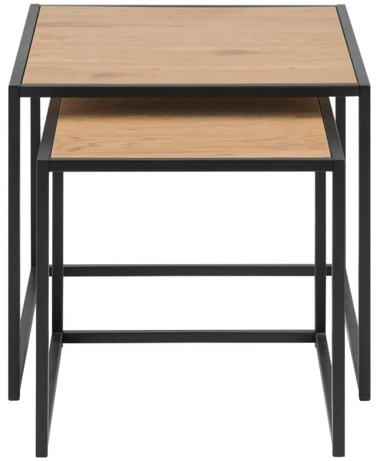 Dwa praktyczne stoliki z blatami z MDF-u w fornirze w kolorze dziki dąb.
