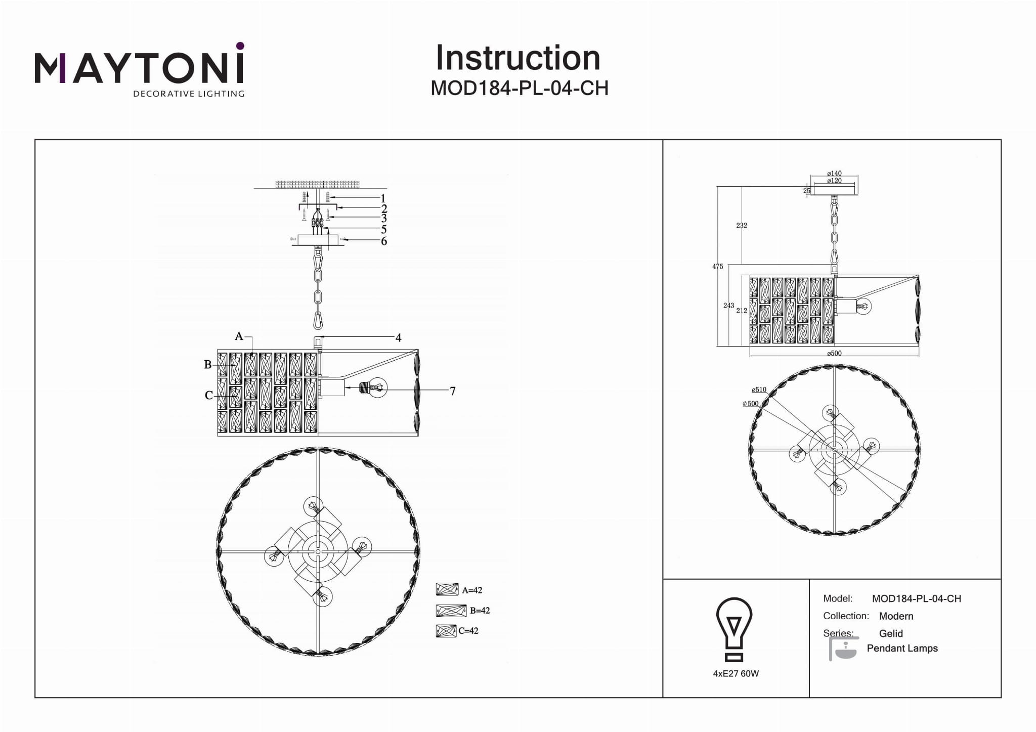 Elegancki Design: Żyrandol Luxe Classic dodaje odrobinę wyrafinowania do każdego salonu, sypialni, kuchni, jadalni, biura, gabinetu, korytarza, kawiarni lub restauracji. Idealne Wymiary: Z wysokością 26,8 cm i średnicą 50 cm, ten żyrandol został zaprojektowany, aby przyciągać uwagę, nie przytłaczając przestrzeni. Wysokość łańcucha jest regulowana do 107 cm. Dostosowywane Oświetlenie: Wymaga 4 żarówek E27 (nie dołączone), co pozwala na wybór żarówek pasujących do Twojego stylu i preferencji. Każda żarówka nie powinna przekraczać 60 watów. Materiały Premium: Posiada metalową ramę w kolorze chromu i przezroczysty klosz z kryształu w eleganckim cylindrycznym kształcie, co zapewnia trwałość i luksusowy wygląd. Wszechstronne Zastosowanie: Idealny do różnych wnętrz, ten żyrandol poprawia atmosferę każdego pomieszczenia, czyniąc go wszechstronnym i stylowym rozwiązaniem oświetleniowym.